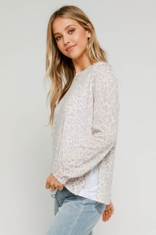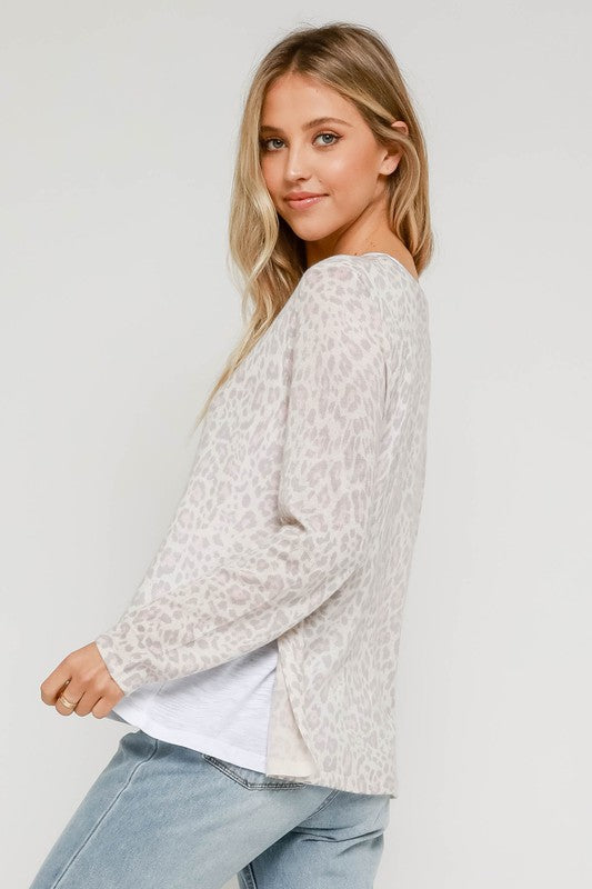 CREAM GREY TAUPE LEOPARD LAYERED SWEATER FINAL SALE