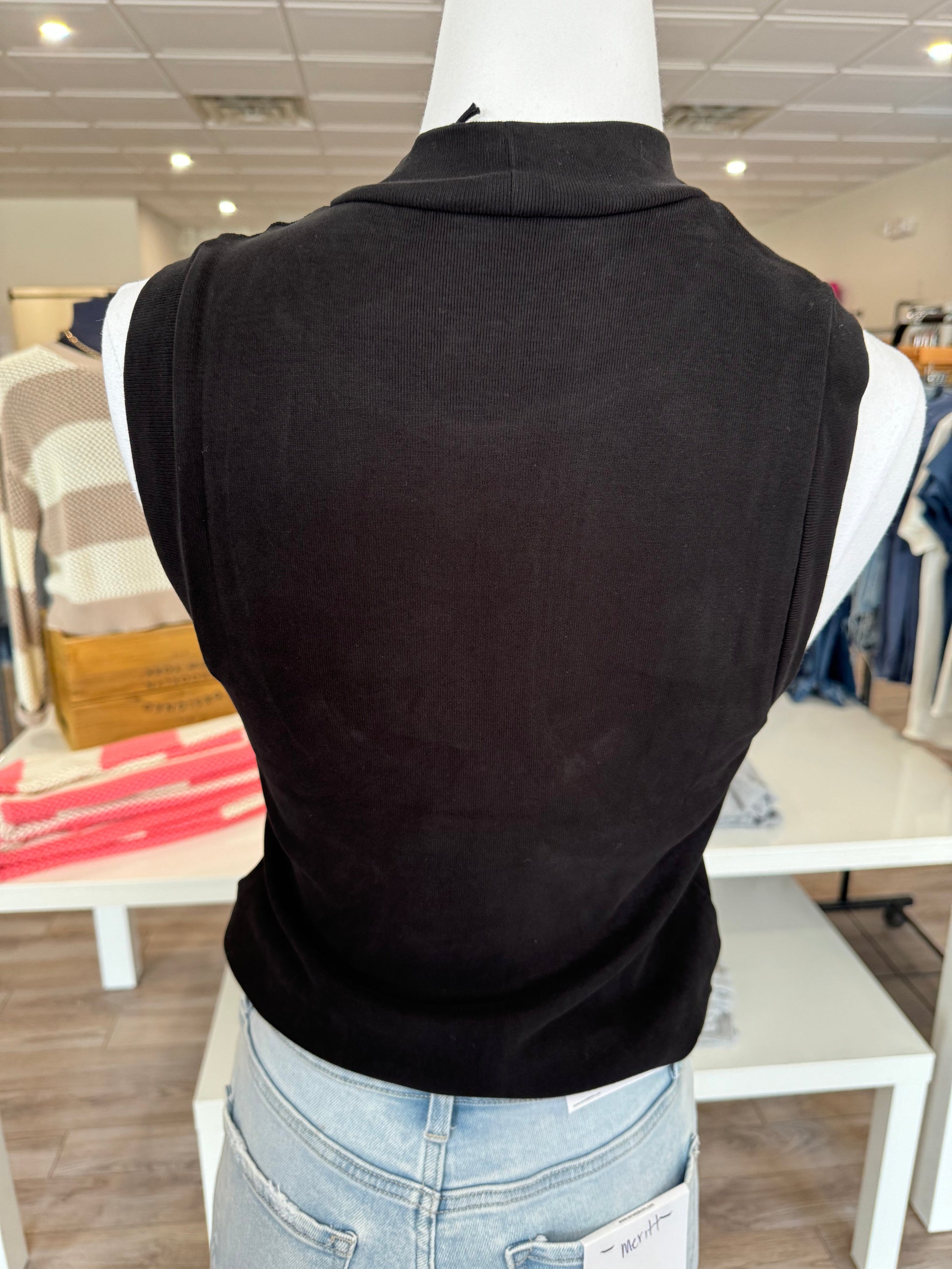 BLACK MOCK TURTLENECK SLEEVELESS TOP
