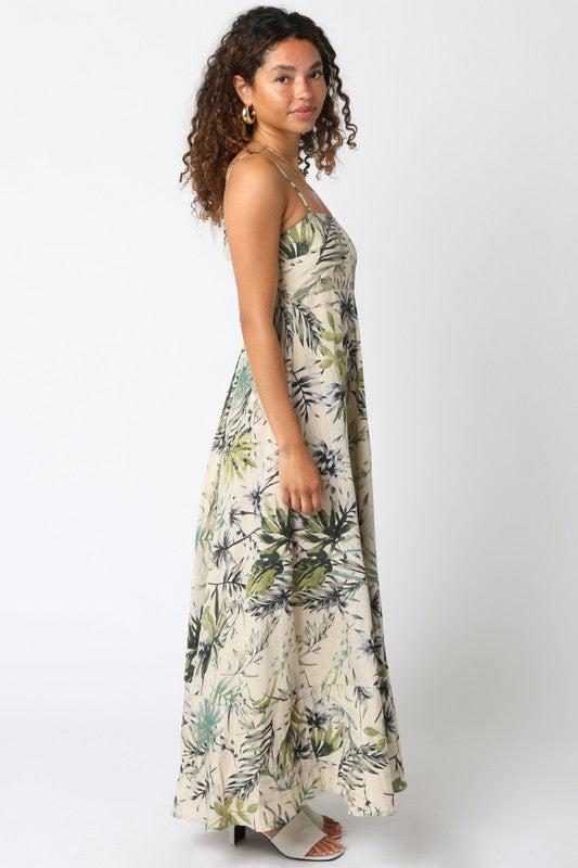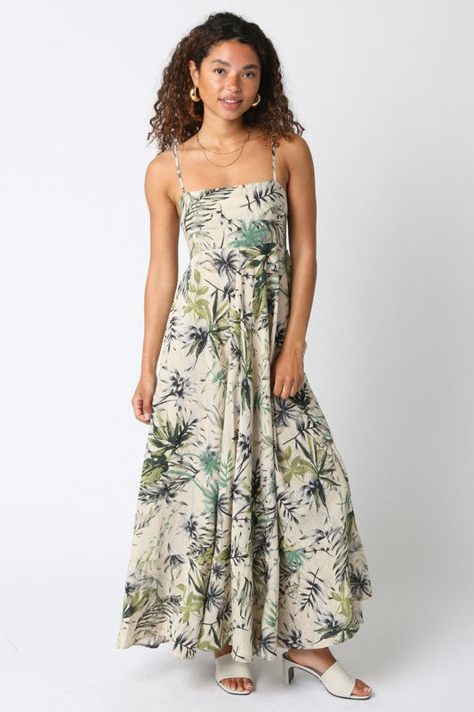 BEIGE OLIVE TROPICAL MIX DRESS JOSIE