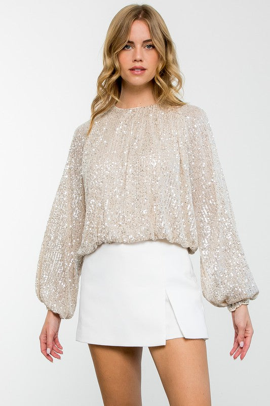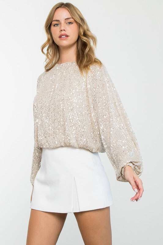 THML CREAM SEQUIN LONG SLEEVE TOP