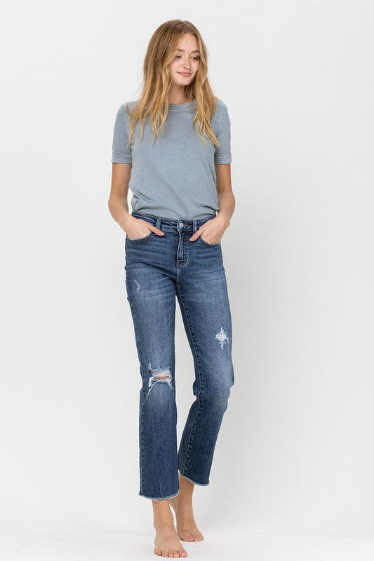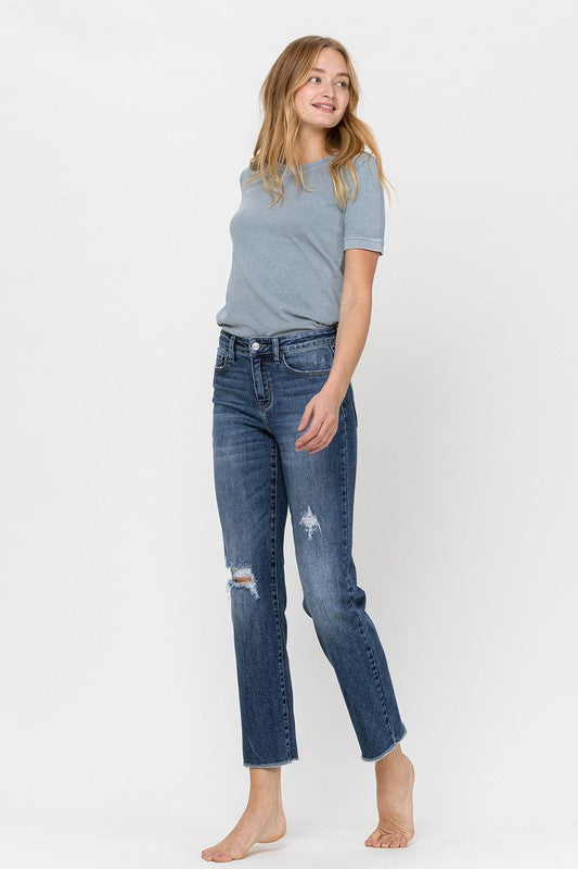 VERVET MID RISE DISTRESSED RELAXED STRAIGHT DENIM JEANS CONNIE