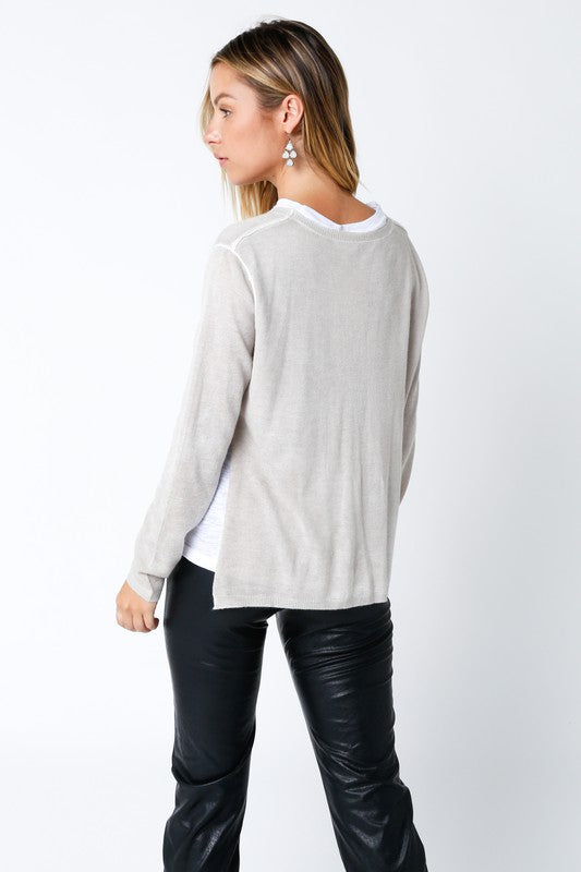 OLIVACEOUS MEGAN KHAKI DOUBLE LAYER ILLUSION SWEATER