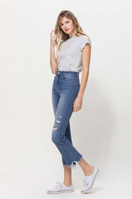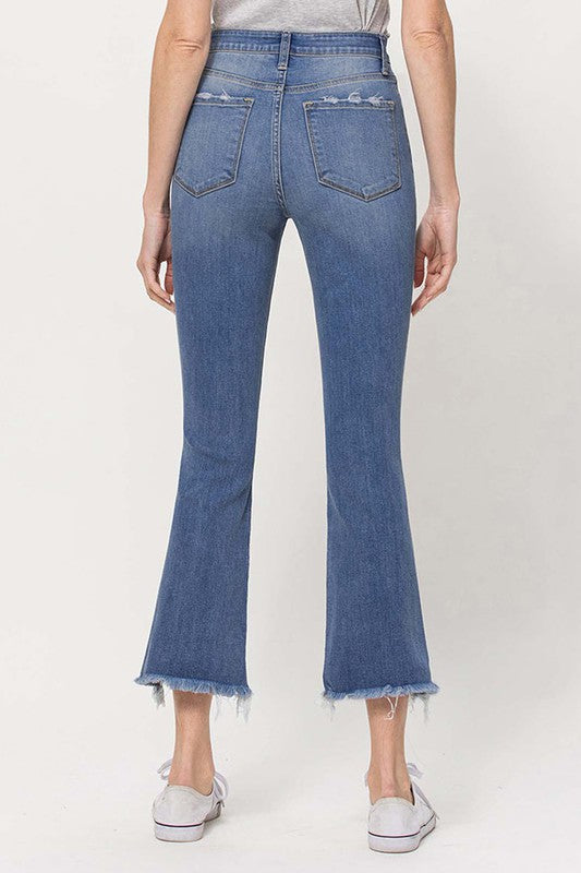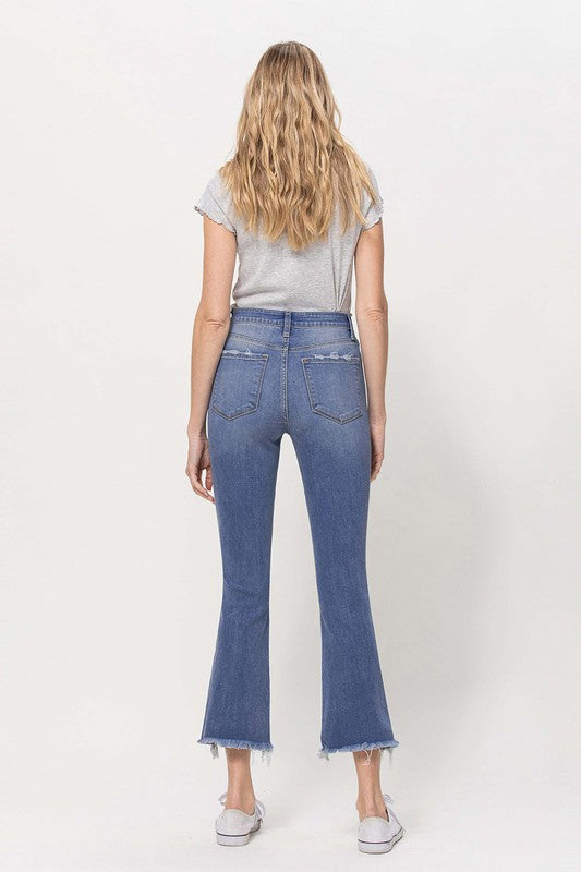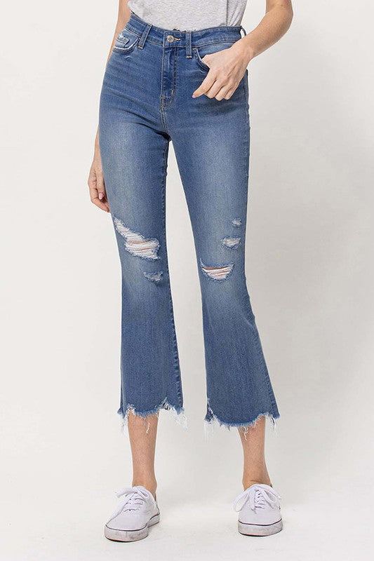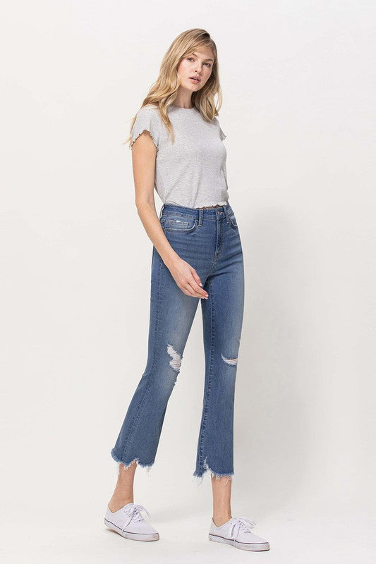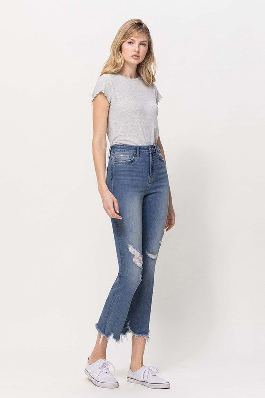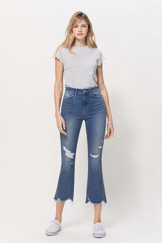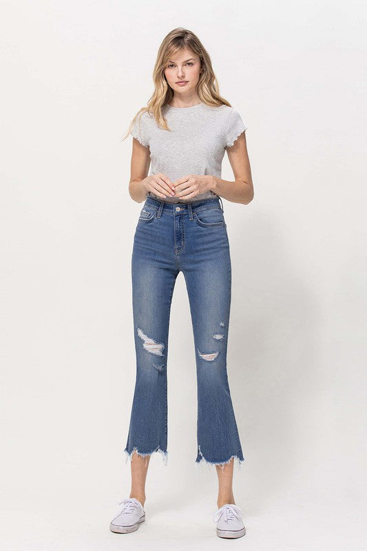 Maya - HIGH RISE CROP FLARE - COMFORT STRETCH DENIM, HIGH RISE, CROPPED LENGTH, FLARE JEAN, DISTRESSED DETAIL