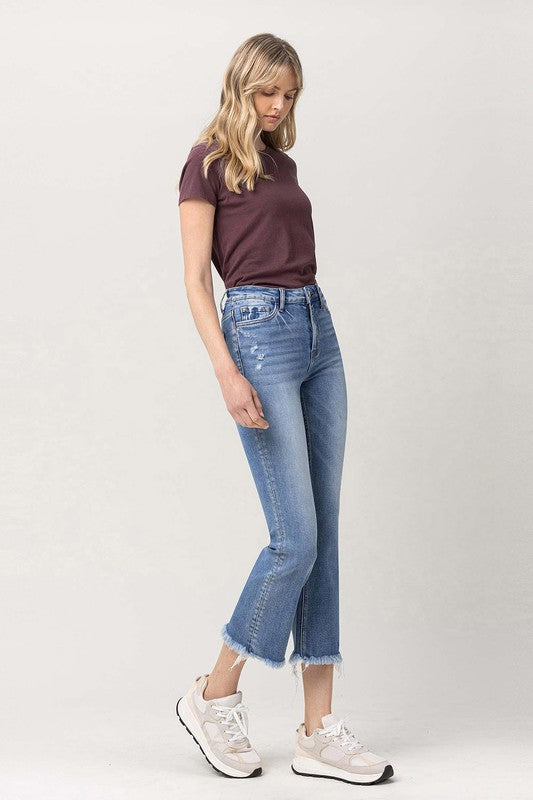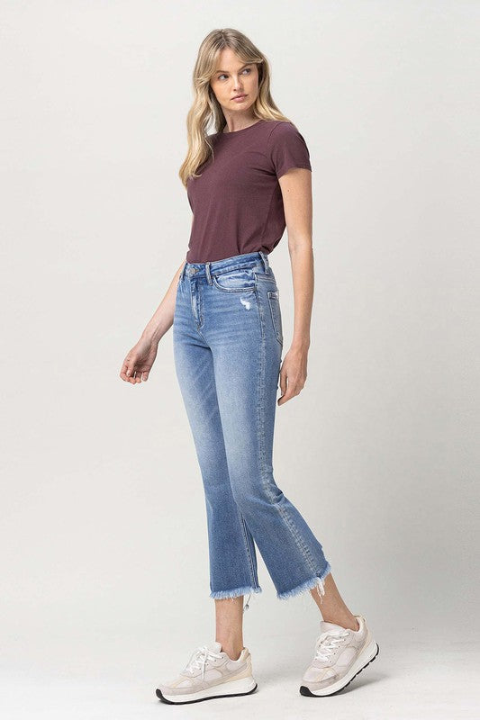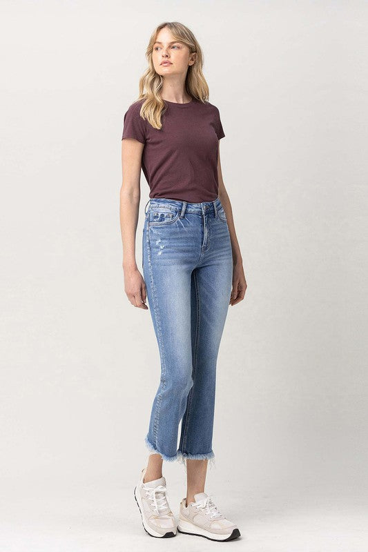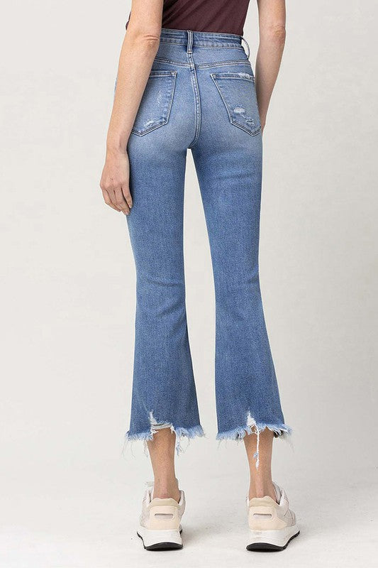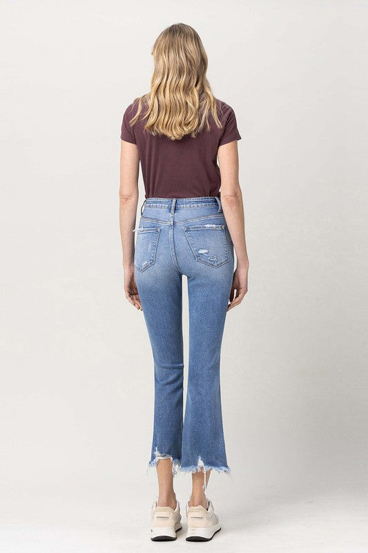 VERVET PENNY HIGH RISE CROPPED KICK FLARE FRAYED HEM