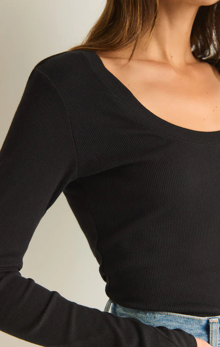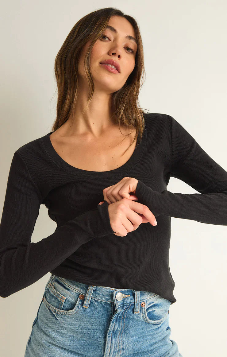 Z SUPPLY SIRENA RIB LONG SLEEVE TEE BLACK