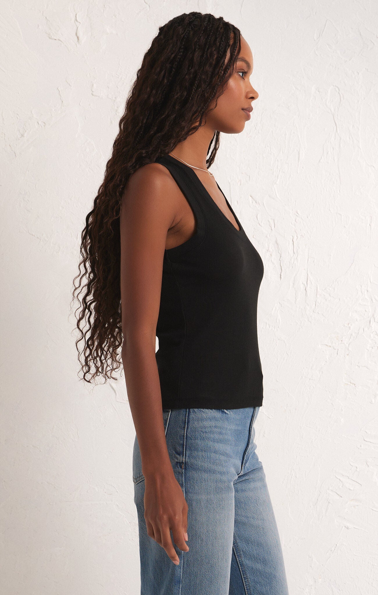An essential staple for the season! The Sirena Rib Tank is made in a soft Feather Rib fabric. This comfy tank has a slim fit, perfect for layering, and hits at the waistband. The hardest decision will be choosing which color to get!