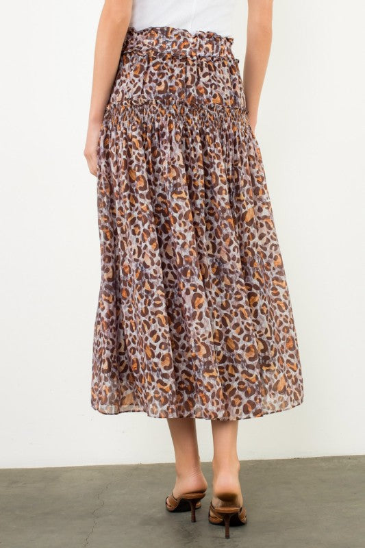 THML SMOCKED WAIST LEOPARD MAXI SKIRT