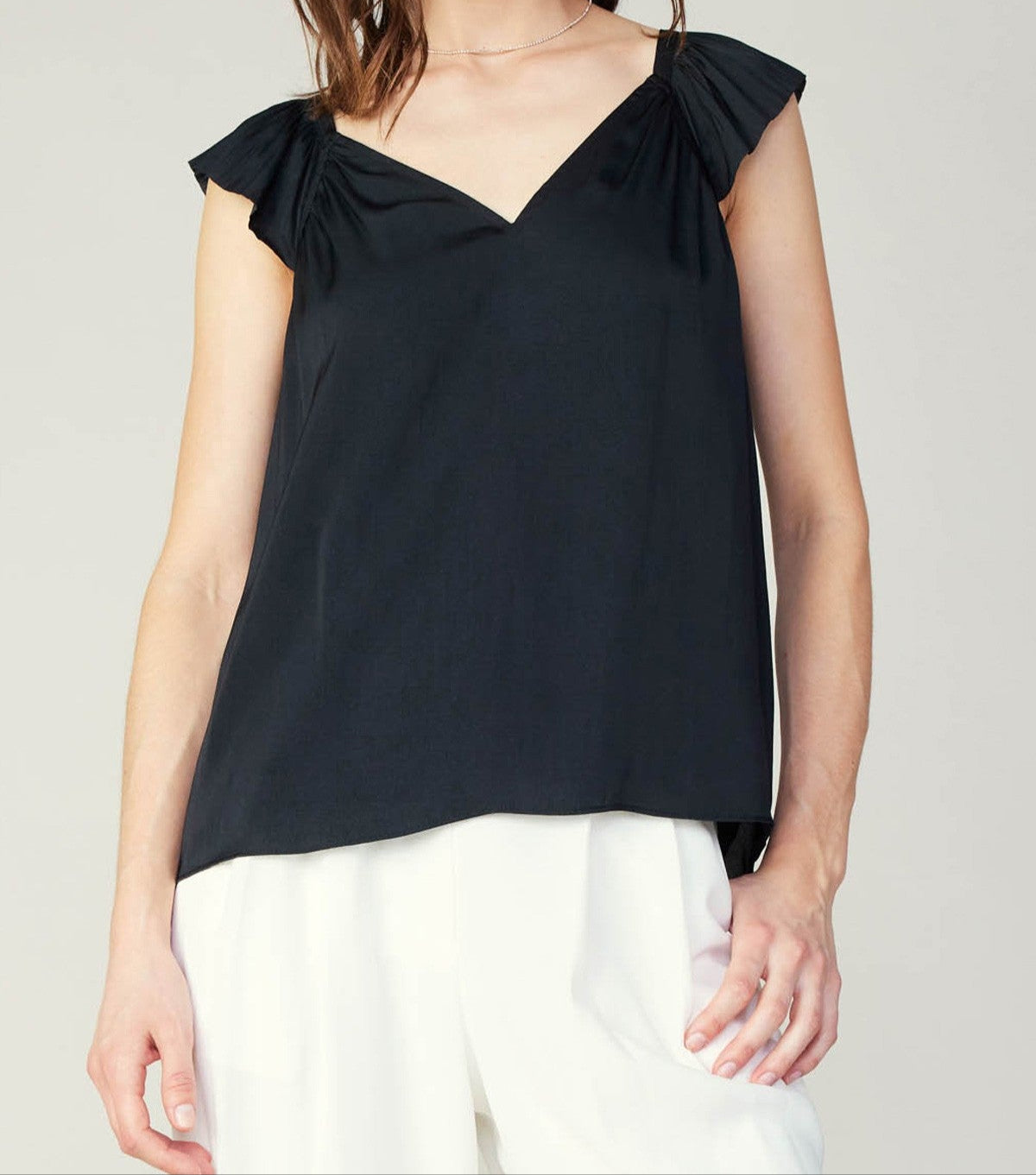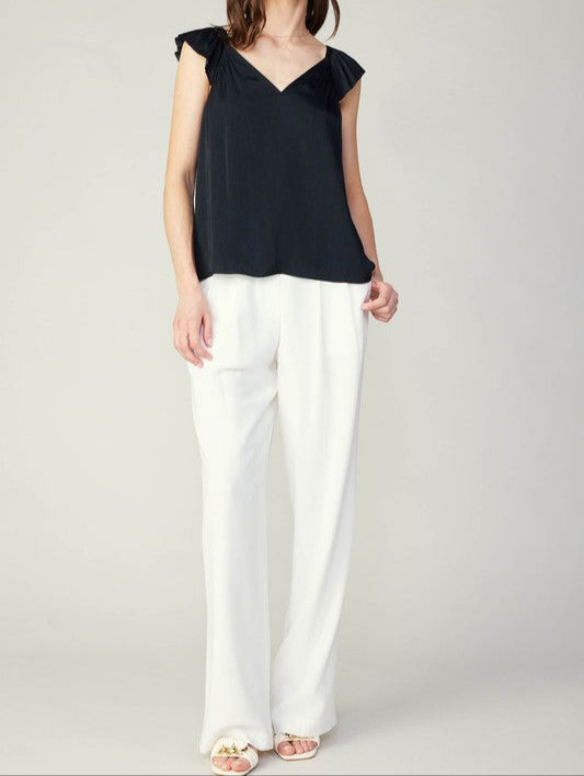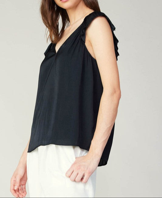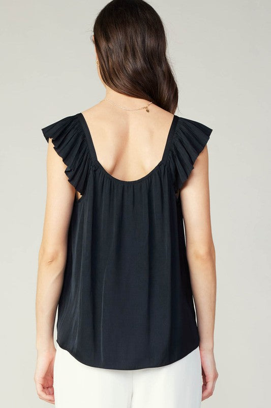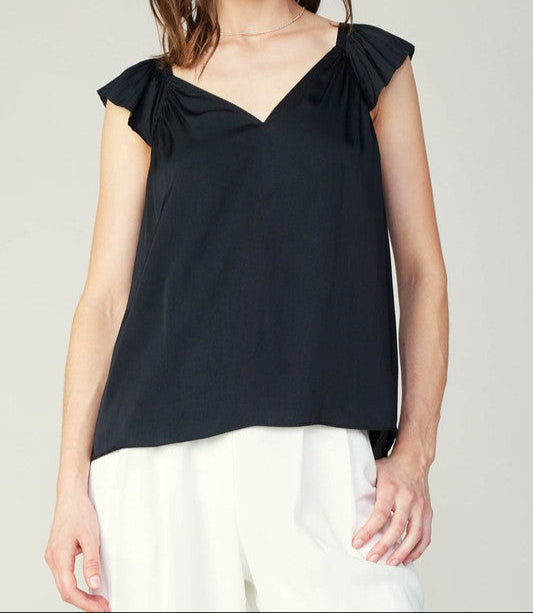 CURRENT AIR BLACK SWEETHEART RUFFLE SLEEVE TOP