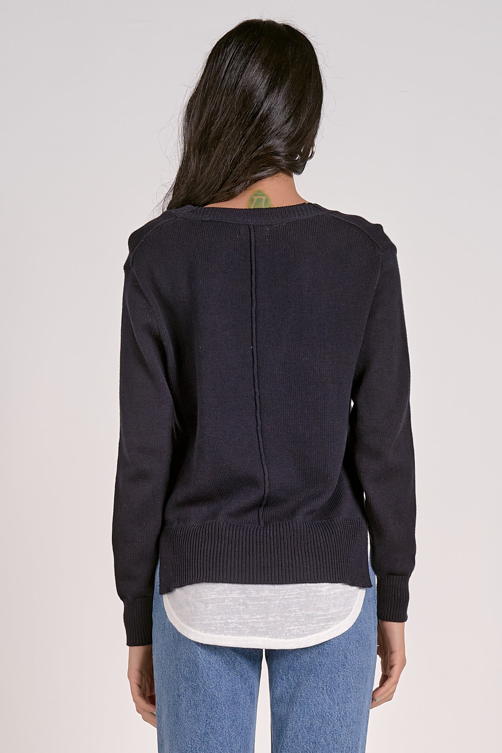 ELAN NAVY WHITE V NECK LAYERED SWEATER