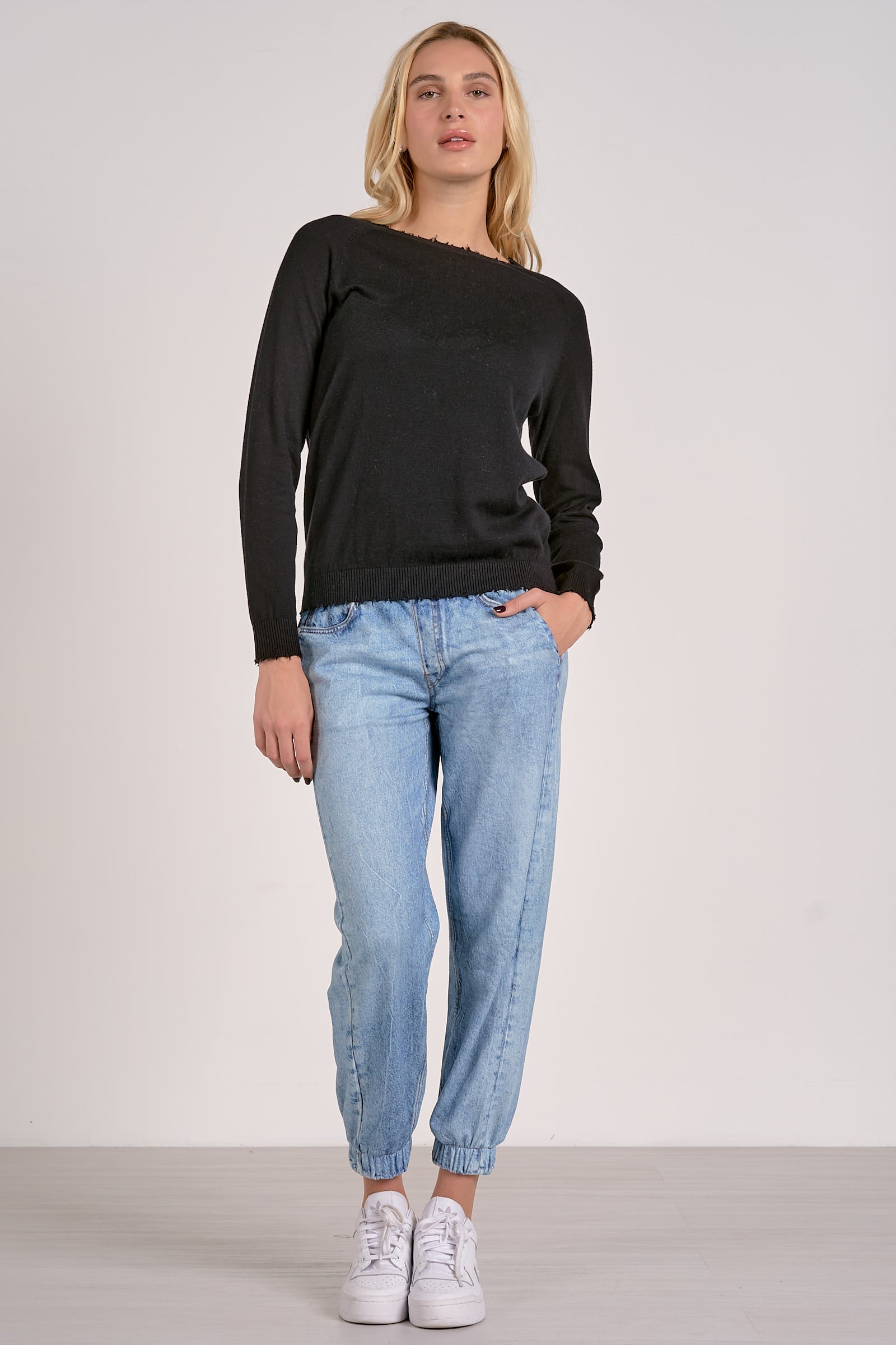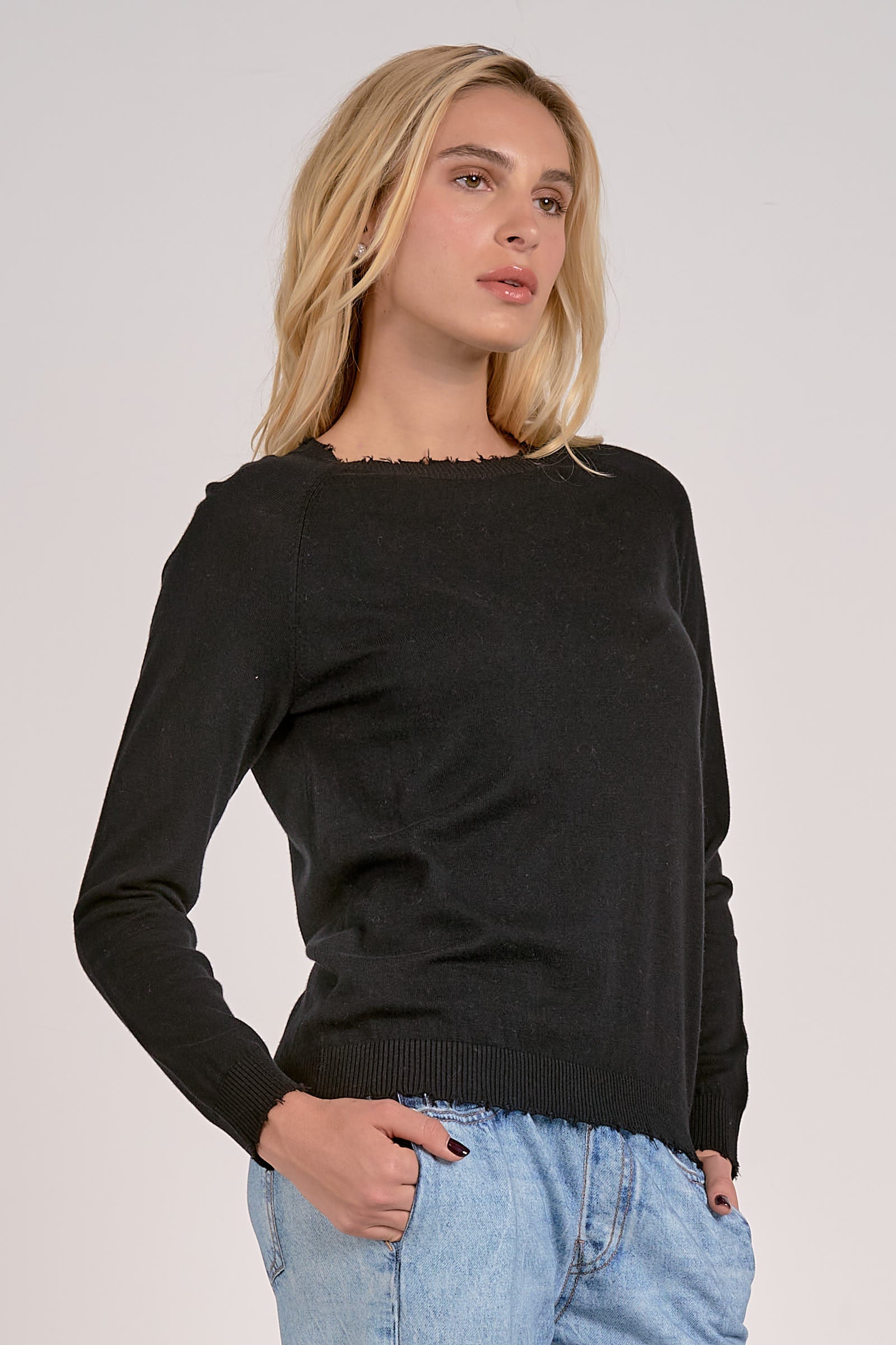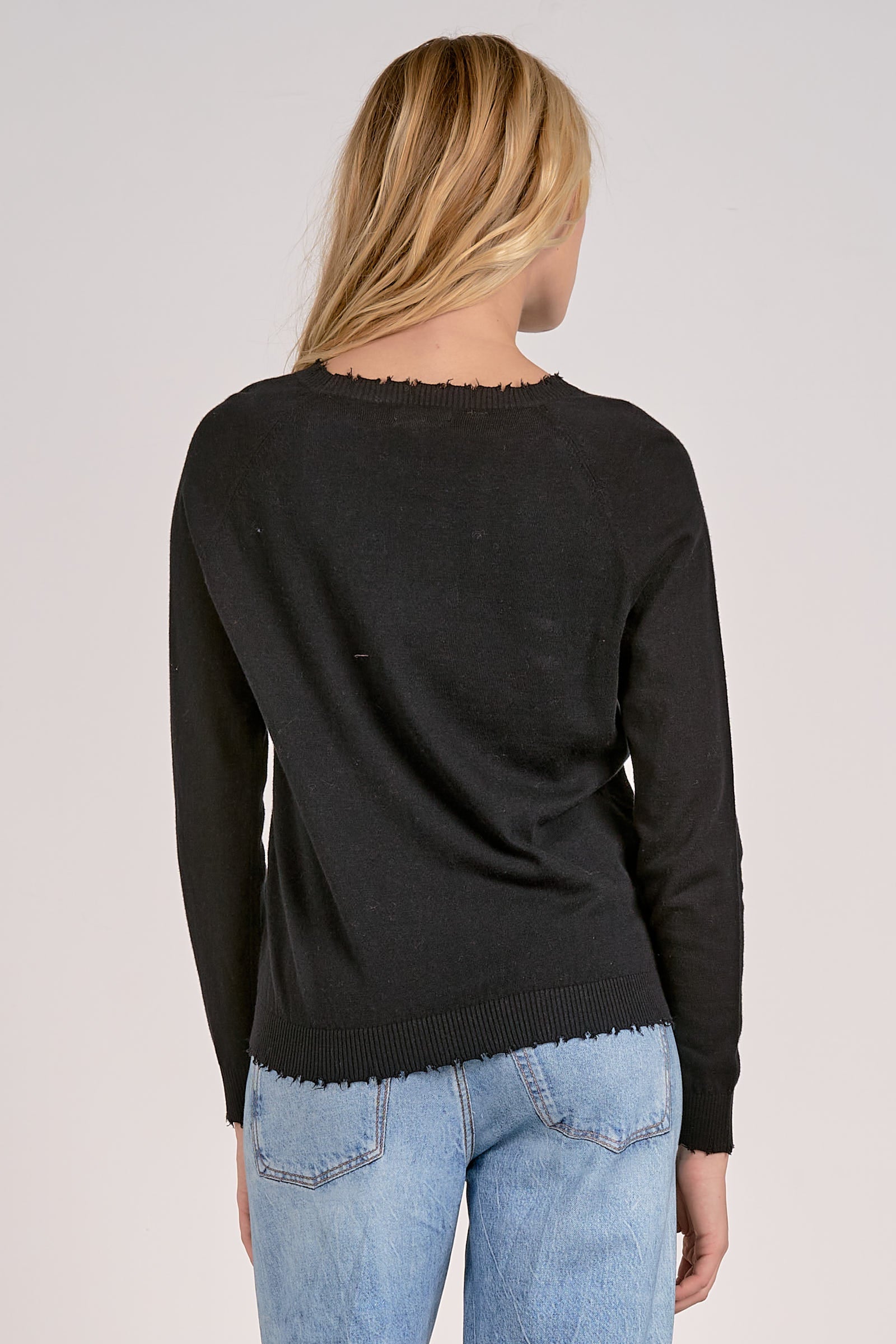 ELAN SWEATER WITH RAW EDGES BLACK