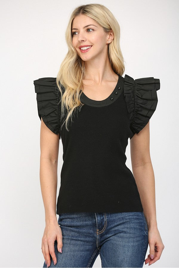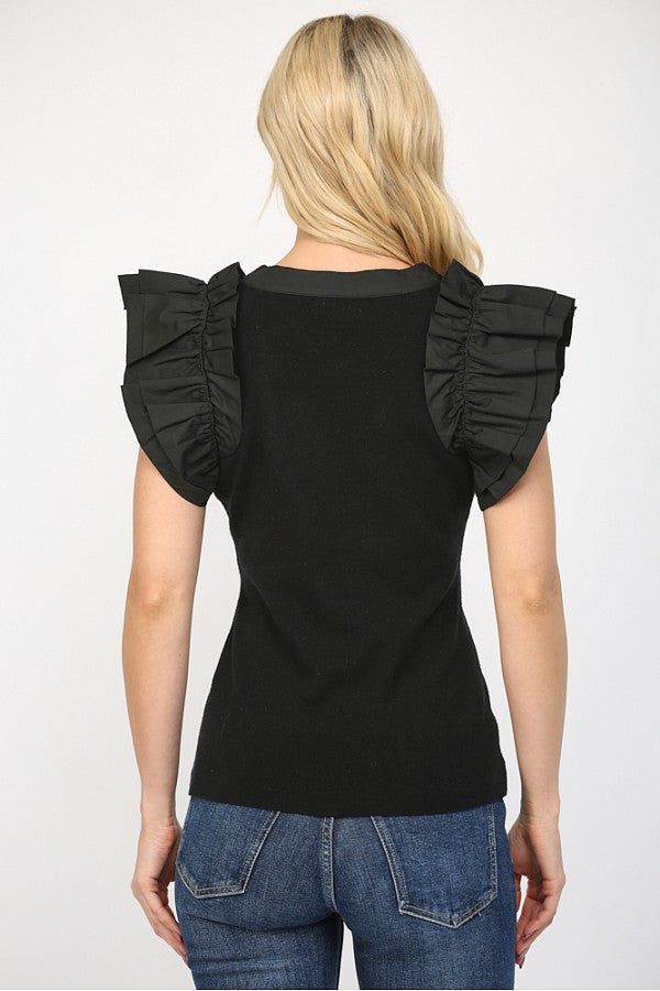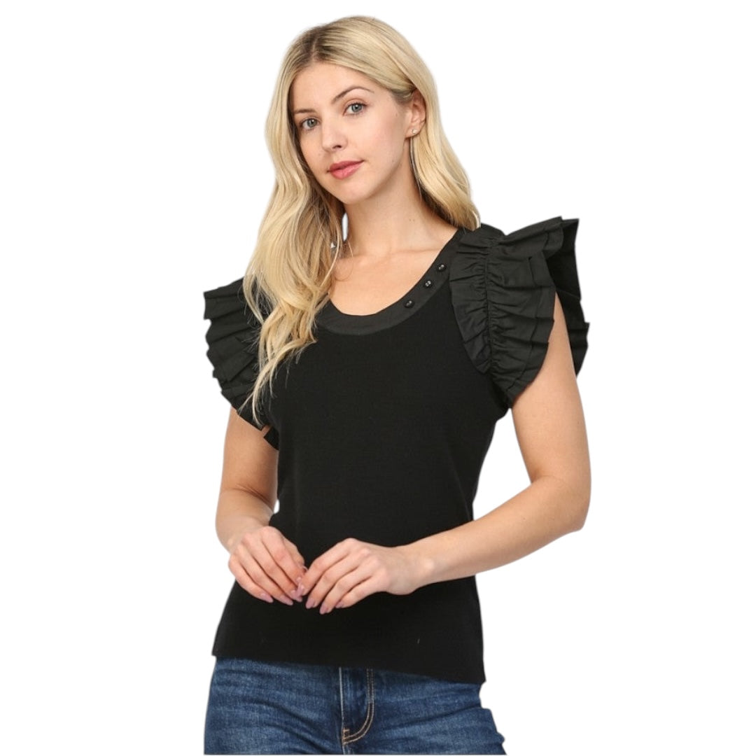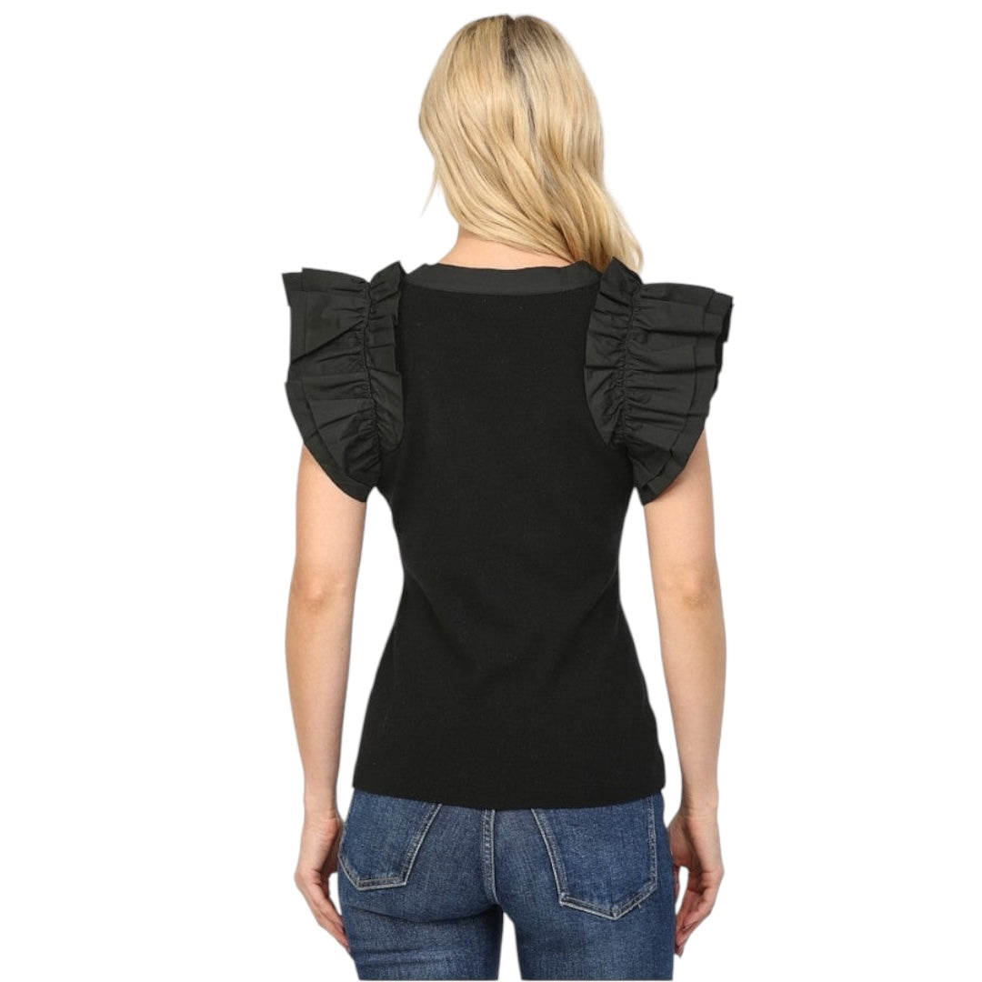 FATE BLACK RUFFLED FITTED SWEATER TOP