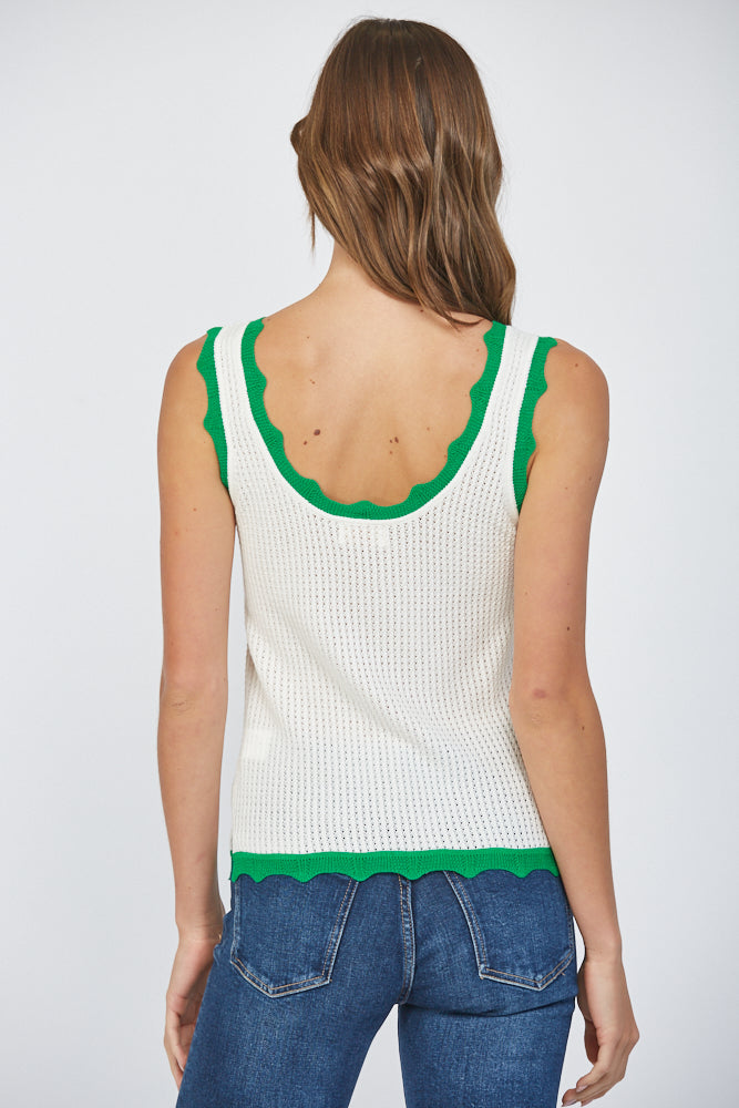 FATE COLORBLOCK WAFFLE SCALLOP TANK CREAM GREEN
