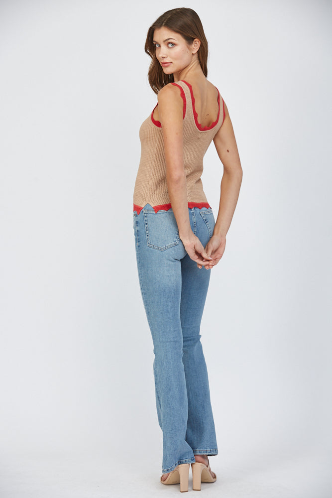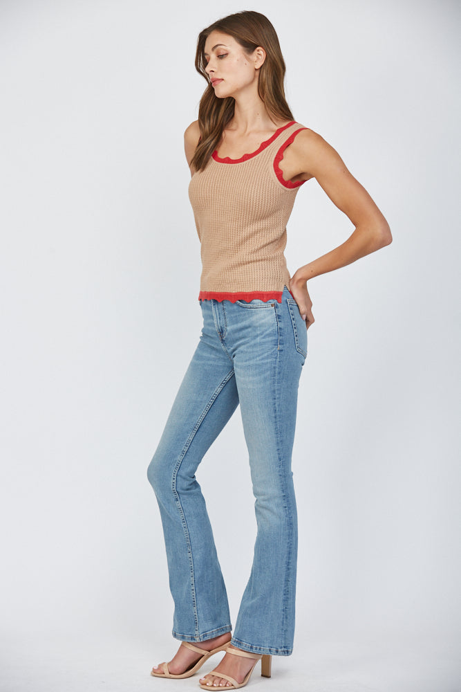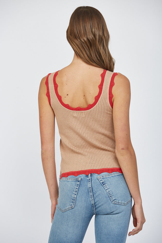 COLORBLOCK SCALLOP EDGE DETAIL TANK SWEATER