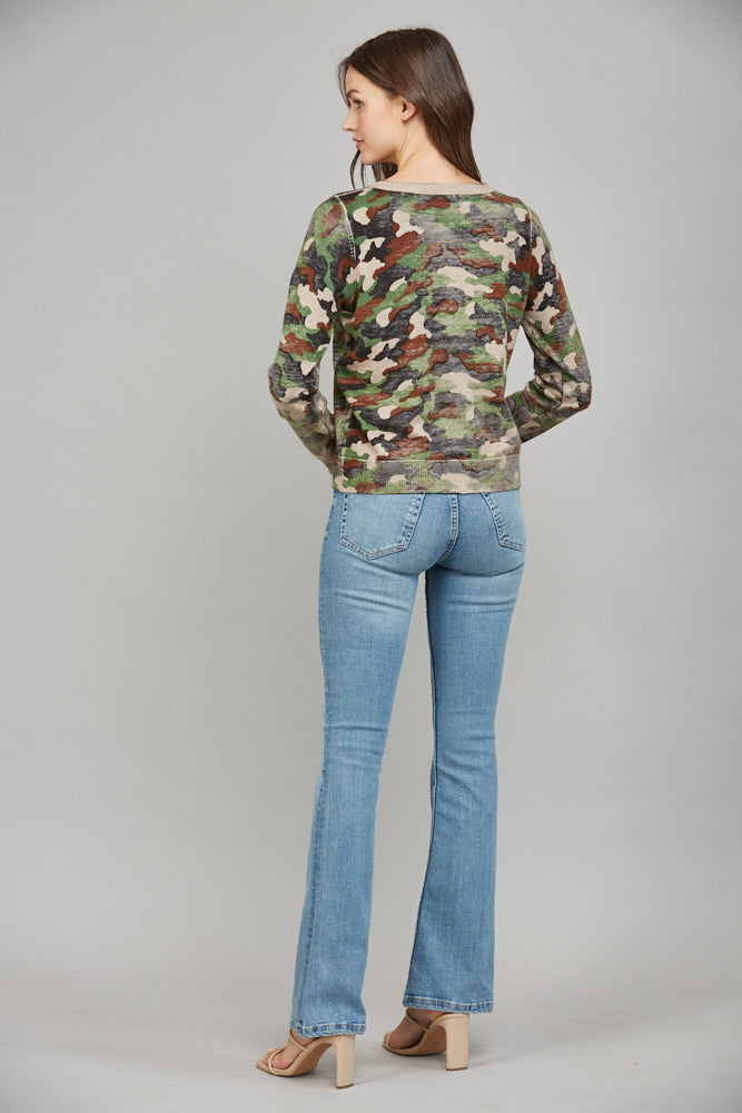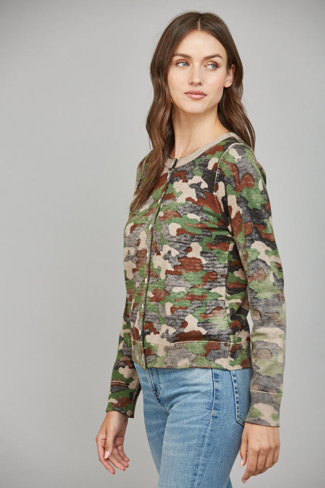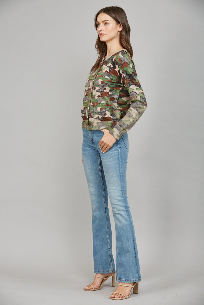 CAMO PRINT FRONT BUTTON CLOSURE CARDIGAN