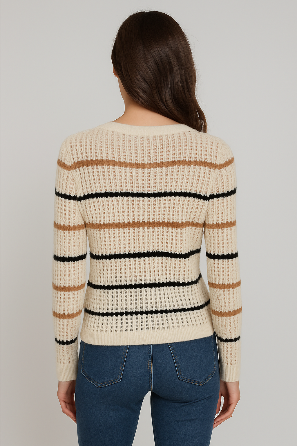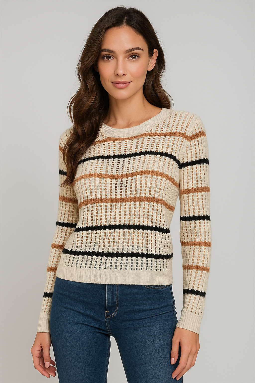 IVORY MULTI STRIPE OPEN STITCH SWEATER