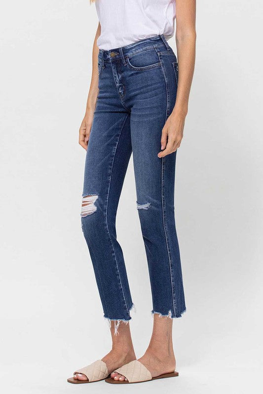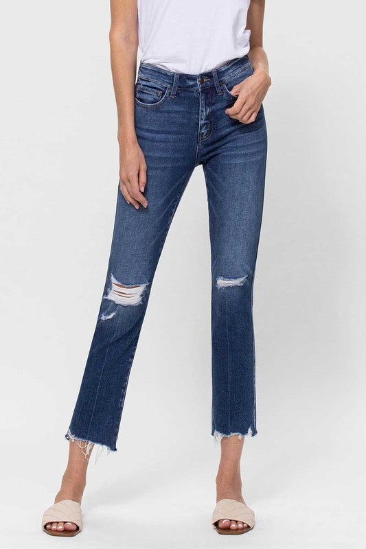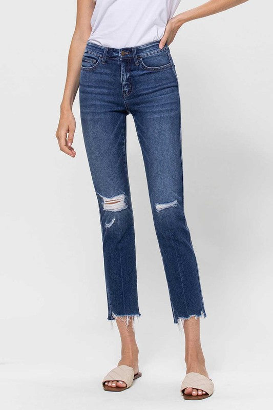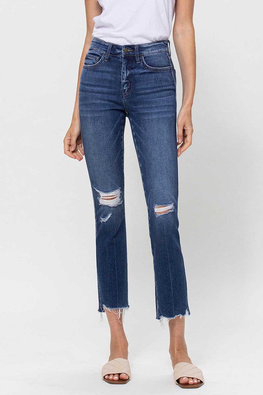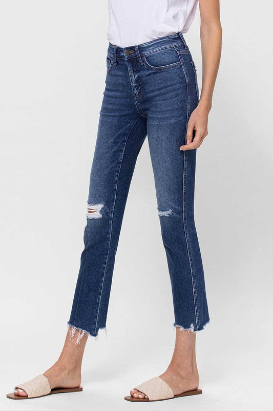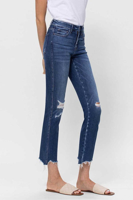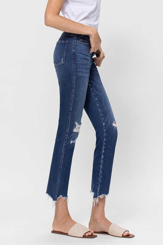 FLYING MONKEY MID RISE CROP SLIM STRAIGHT DISTRESSED FAITH