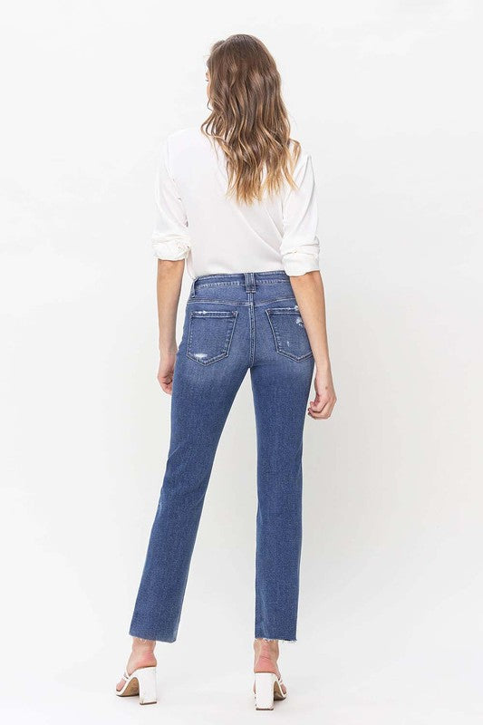 HIGH RISE STRAIGHT JEAN WITH RAW HEM. PARKER