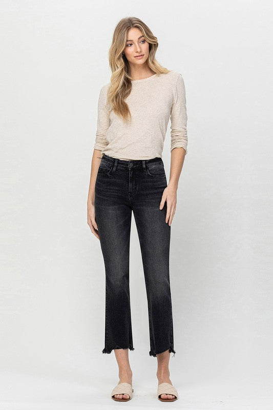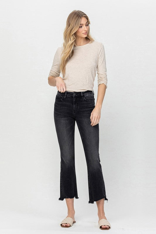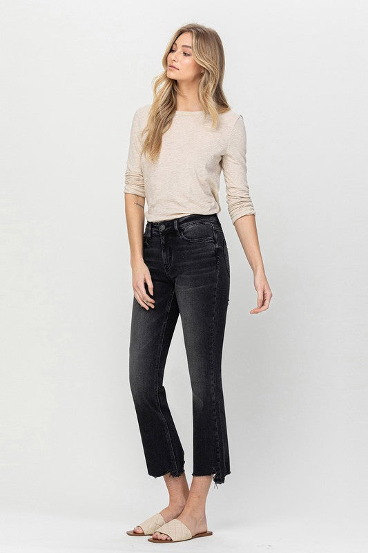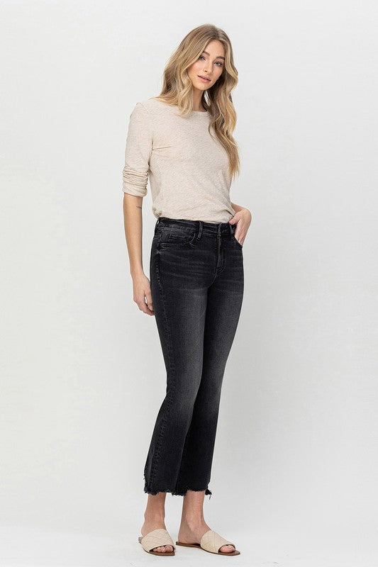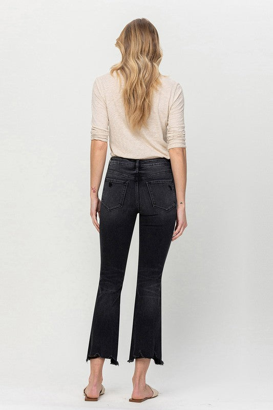 FLYING MONKEY MID RISE DISTRESSED HEM CROP FLARE TALIA TRIAL THING