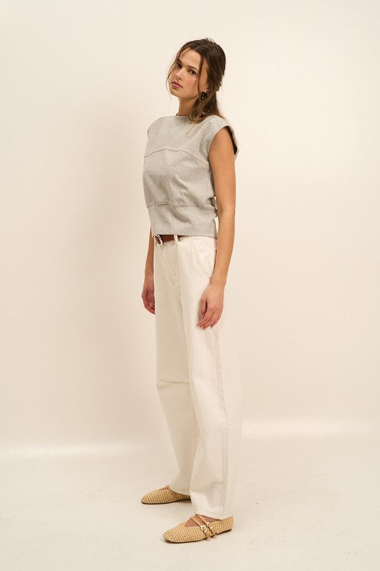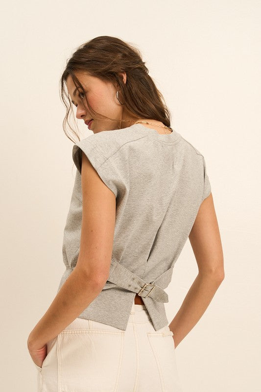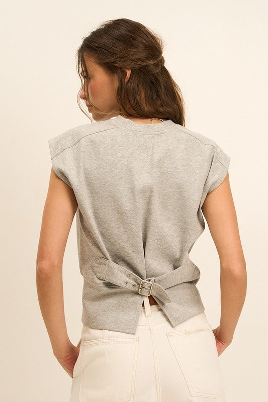 GREY BACK BUCKLE SLEEVELESS KNIT TOP