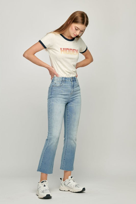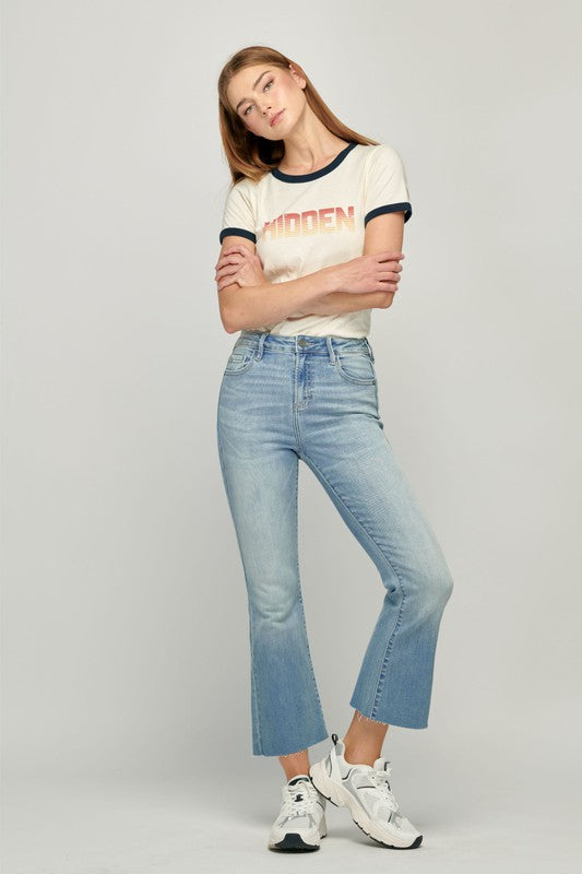 HIDDEN HAPPI LIGHT WASH CROPPED FLARE VICTORIA