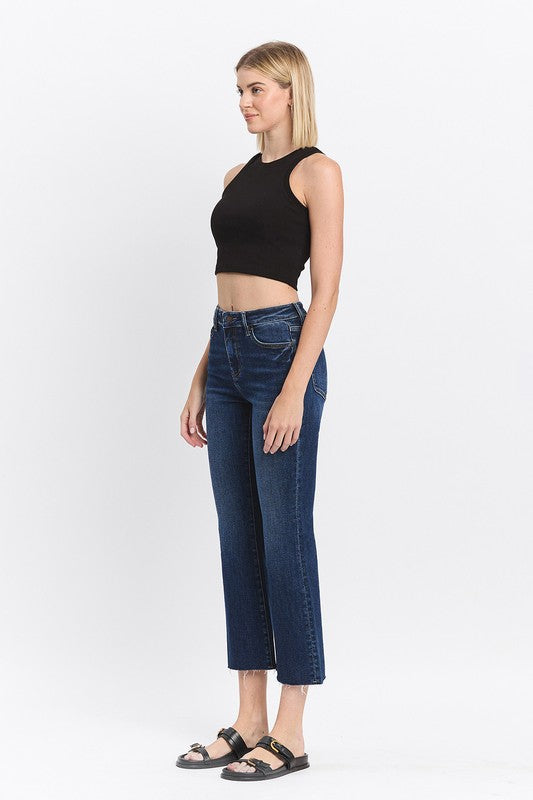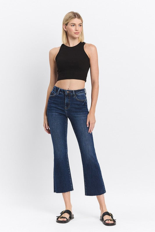 LOVERVET HIGH RISE CLEAN CUT RAW HEM KICK FLARE JEANS ROSIE