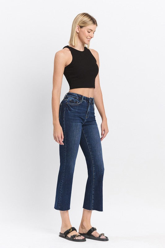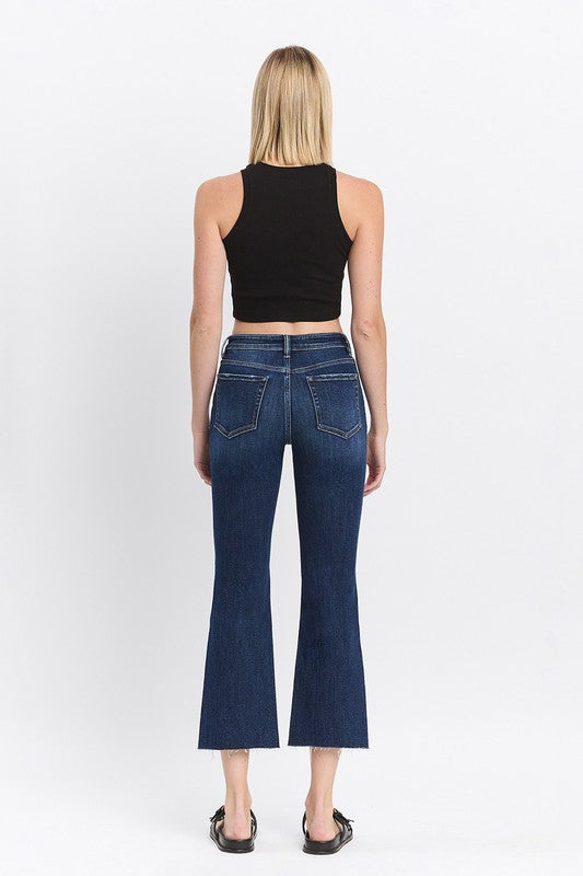 HIGH RISE CLEAN CUT RAW HEM KICK FLARE JEANS