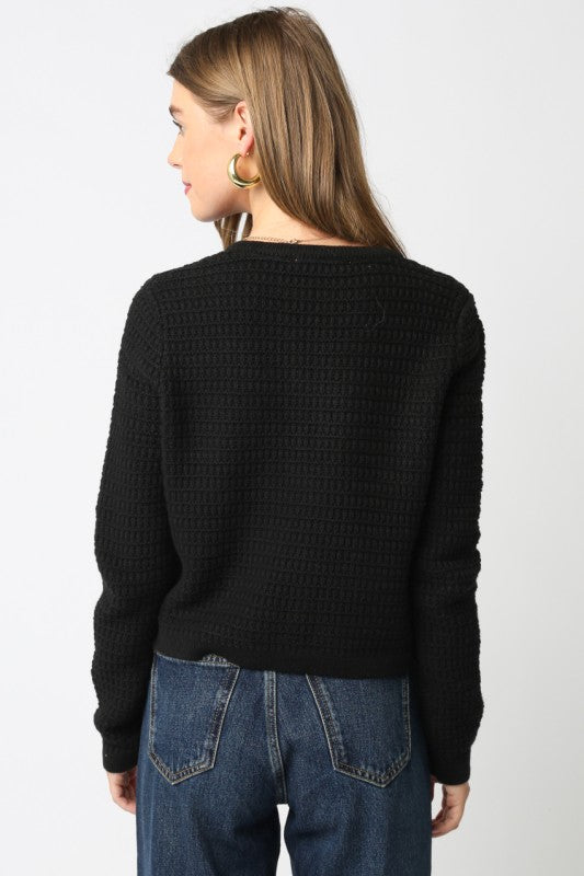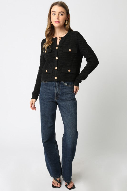 OLIVACEOUS BLACK MAGGIE KNIT BUTTON CARDI SWEATER