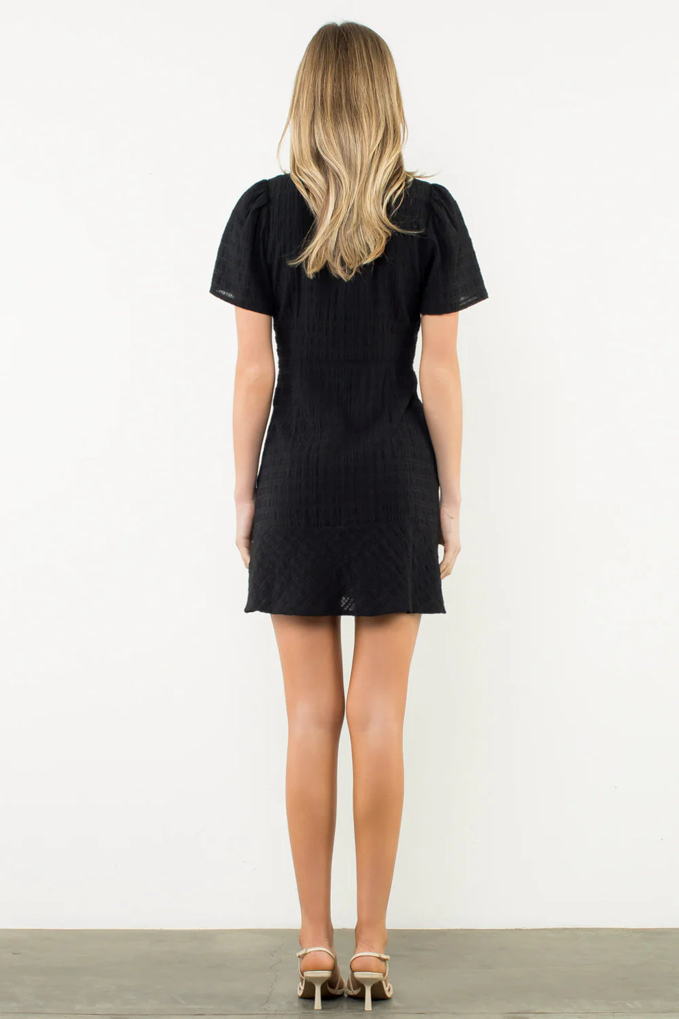 THML ANYA BLACK SHORT SLEEVE TEXTURED DRESS