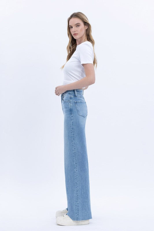 VERVET HIGH RISE CLEAN CUT RAW HEM WIDE JEANS PHOEBE