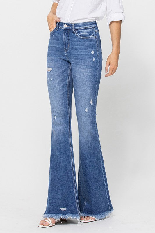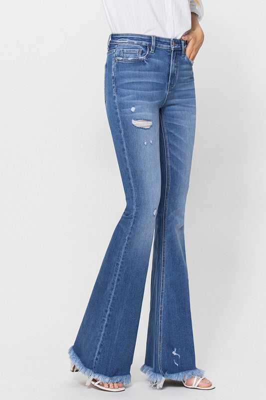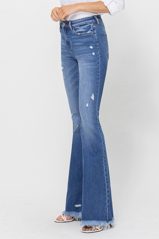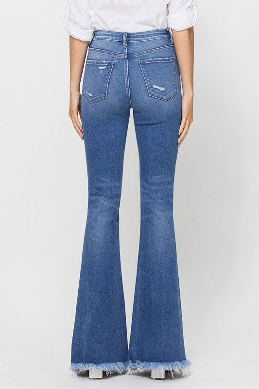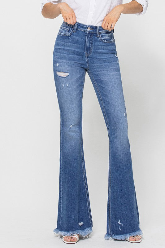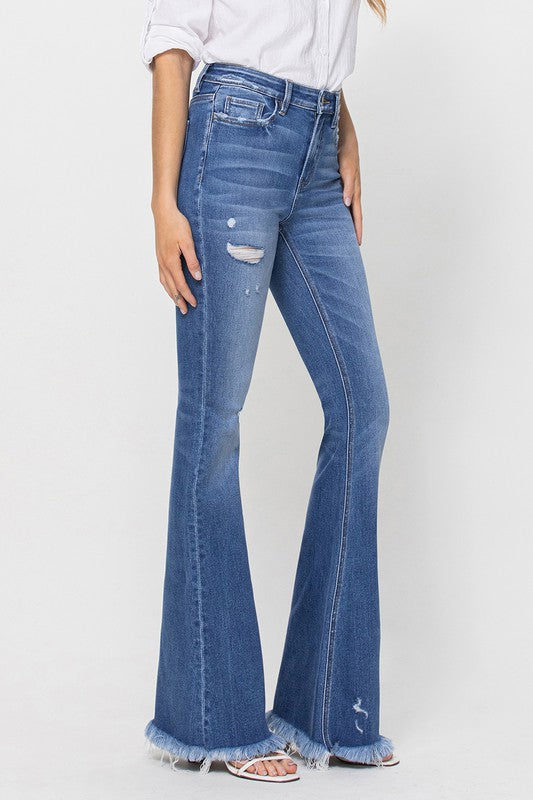 VERVET HIGH RISE FLARE FRAYED HEM MEDIUM WASH MELINDA