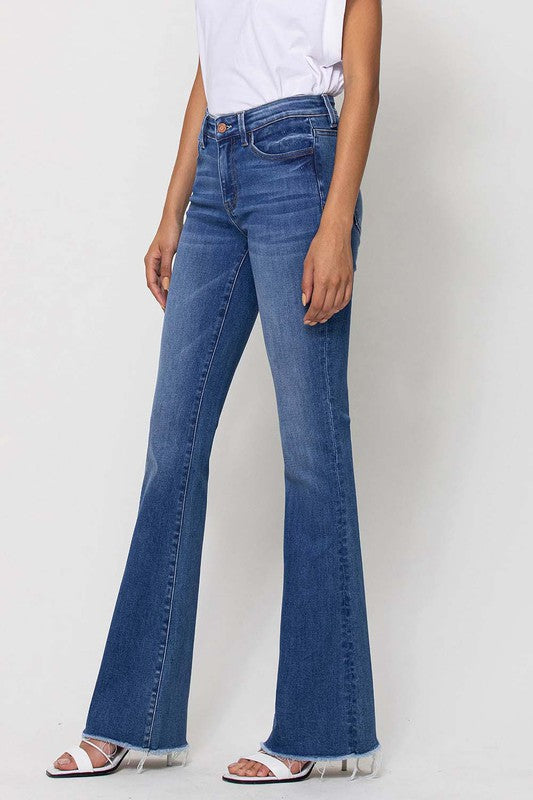 VERVET MID RISE RAW HEM FLARE JEANS SUNNY