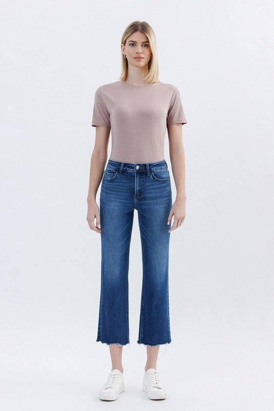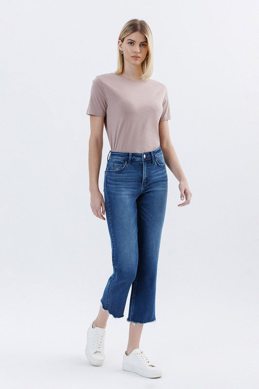 VERVET RISE UNEVEN RAW HEM ANKLE STRAIGHT JEANS LUNA