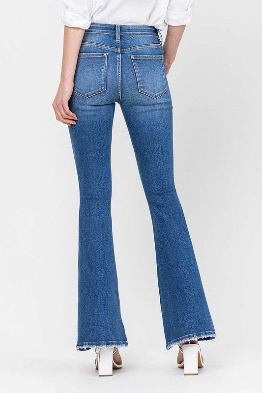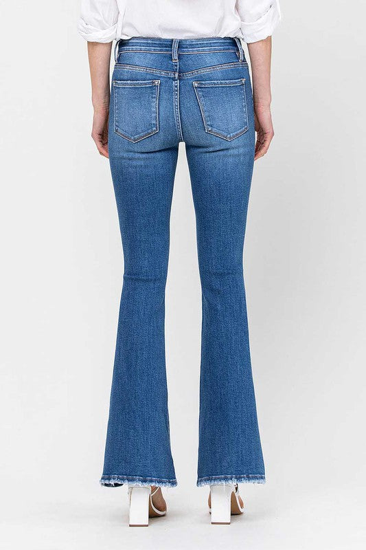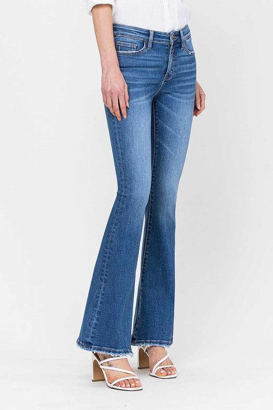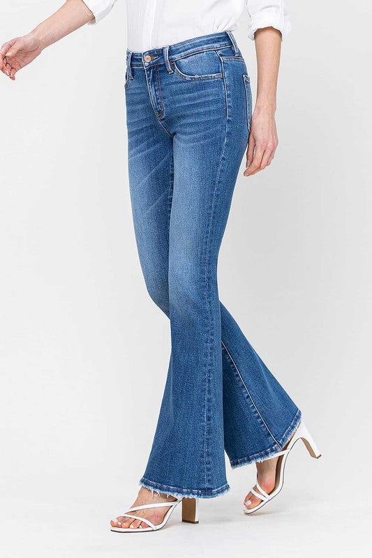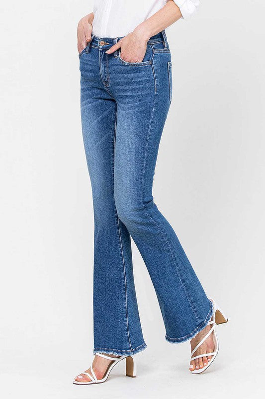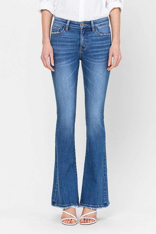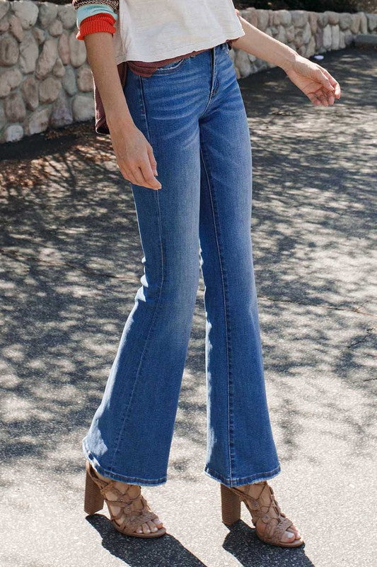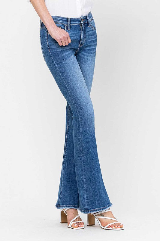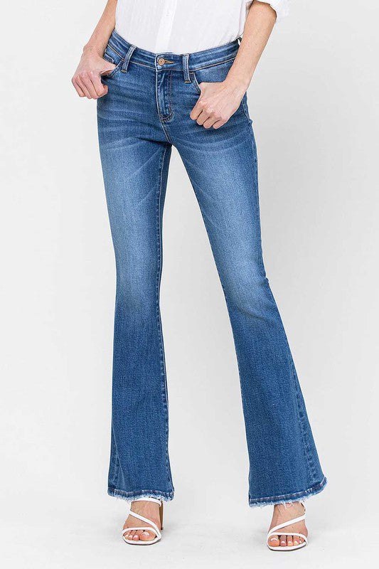 MID RISE FLARE JEANS COMFORT STRETCH DENIM, FULL LENGTH, FLARE JEANS