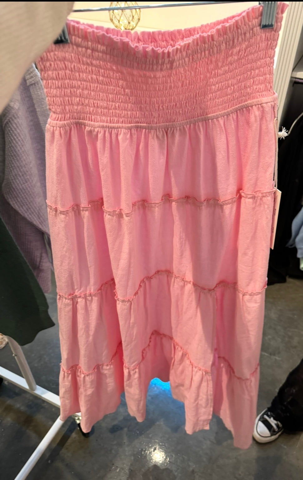OCEAN DRIVE PINK SAND TEXTURED TIERED MAXI SKIRT FINAL SALE