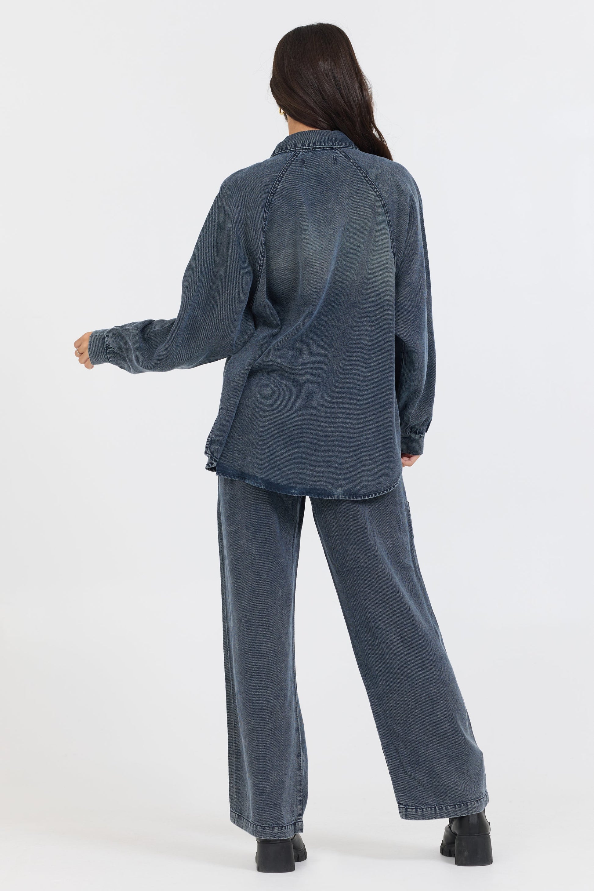 VINTAGE HAVANA DEEP DENIM TWILL TENCEL ZIP UP COLLARED SHIRT
