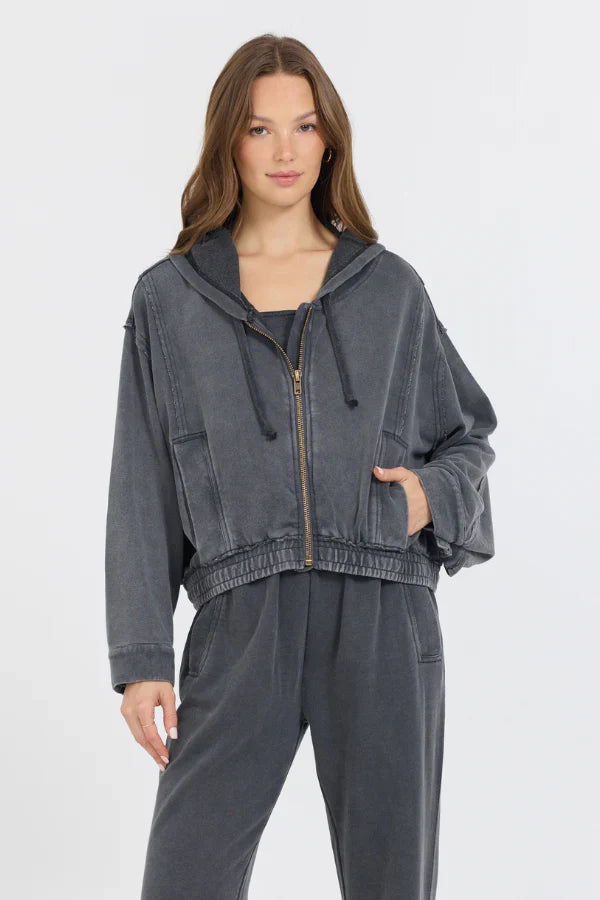 VINTAGE HAVANA WASHED CHARCOAL FRENCH TERRY ZIP HOODIE