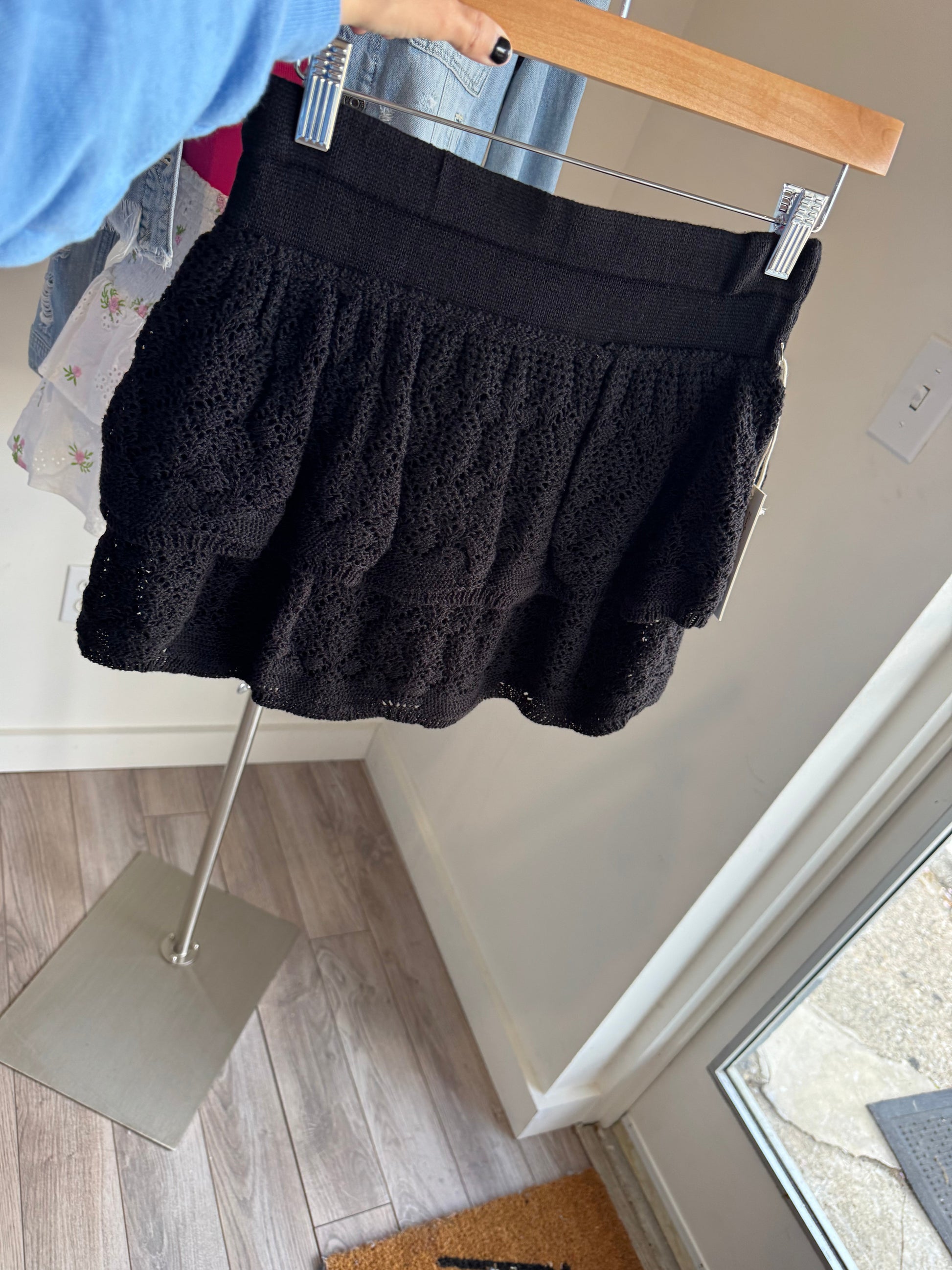 BLACK TIERED MINI SKIRT CROCHET KNIT