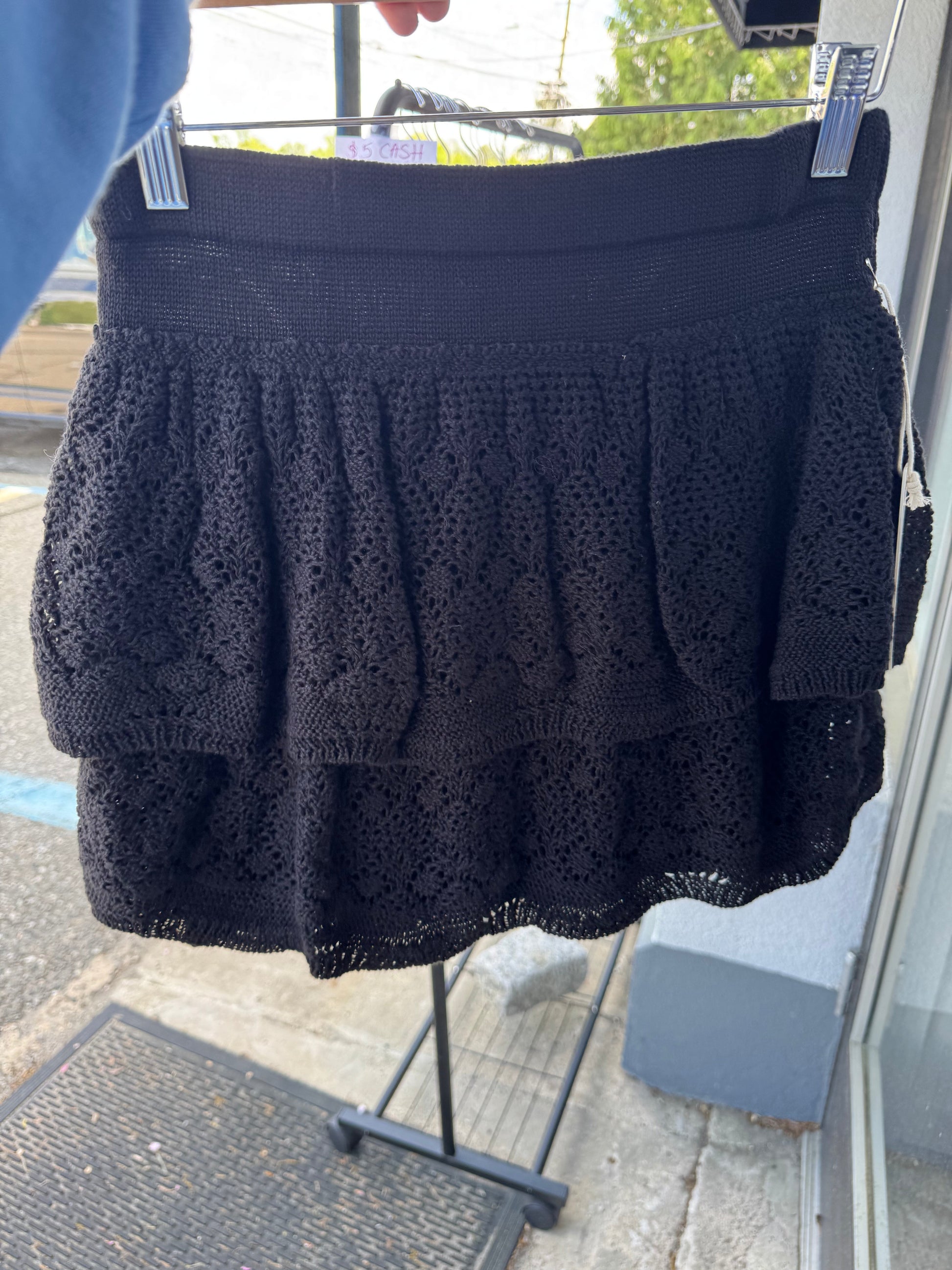 VINTAGE HAVANA BLACK TIERED MINI SKIRT CROCHET KNIT FINAL SALE