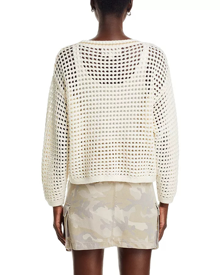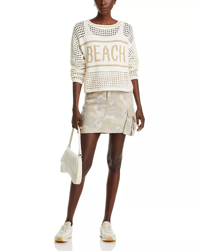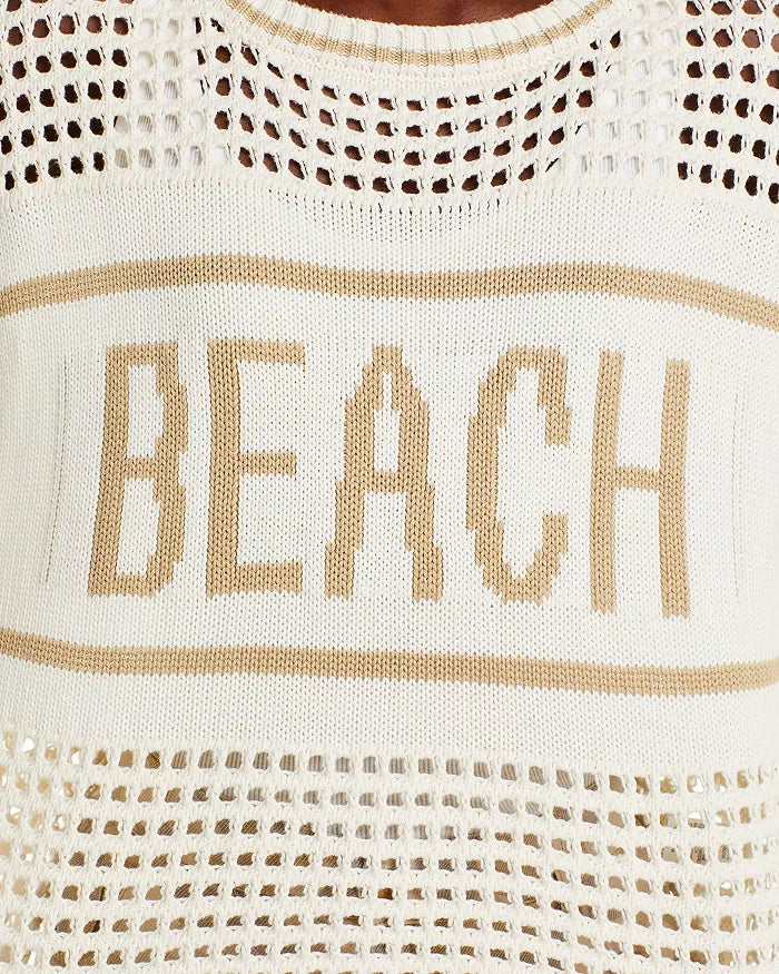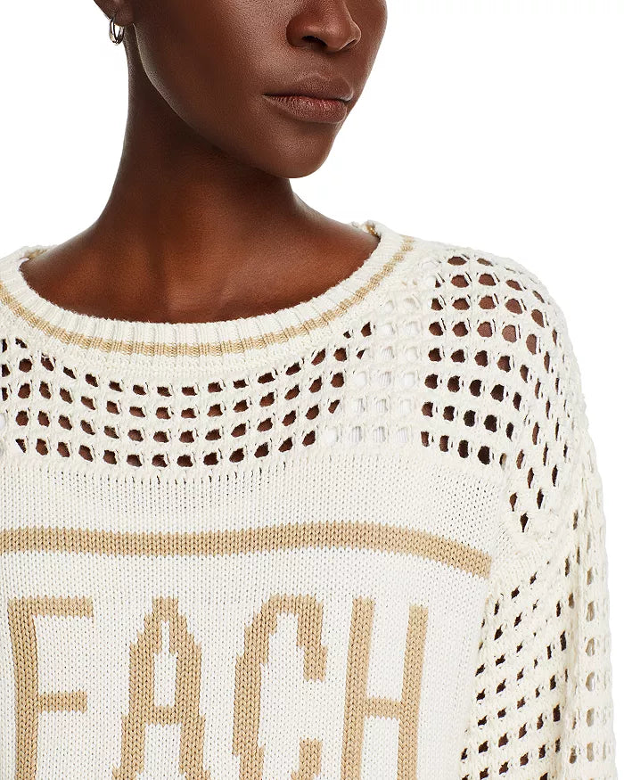 VINTAGE HAVANA WHITE WITH TAN "BEACH" NETTED GRAPHIC SWEATER.