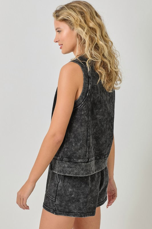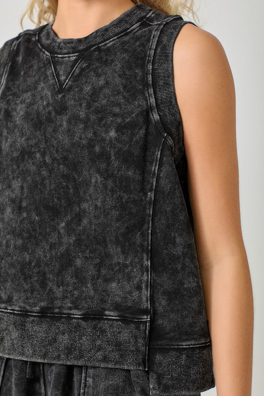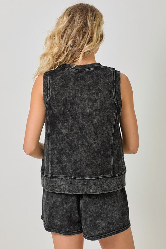 WASHED BLACK SLEEVELESS TERRY TOP