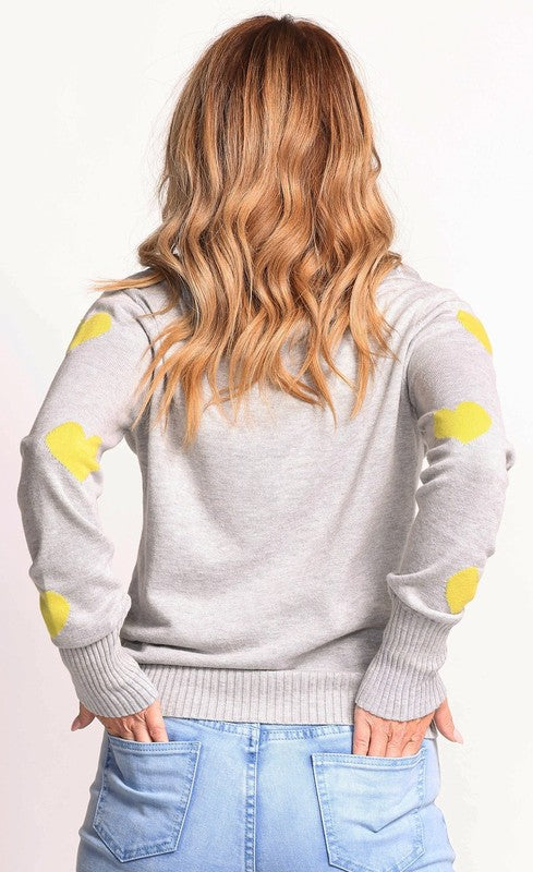ALL MY LOVE SWEATER GREY WITH YELLOW HEARTS