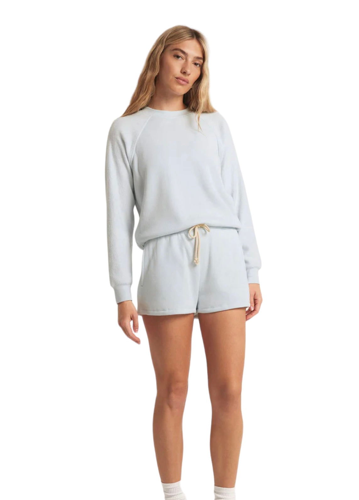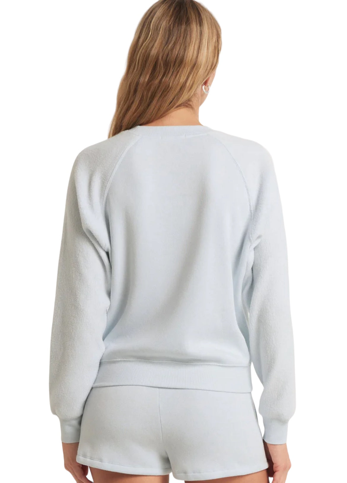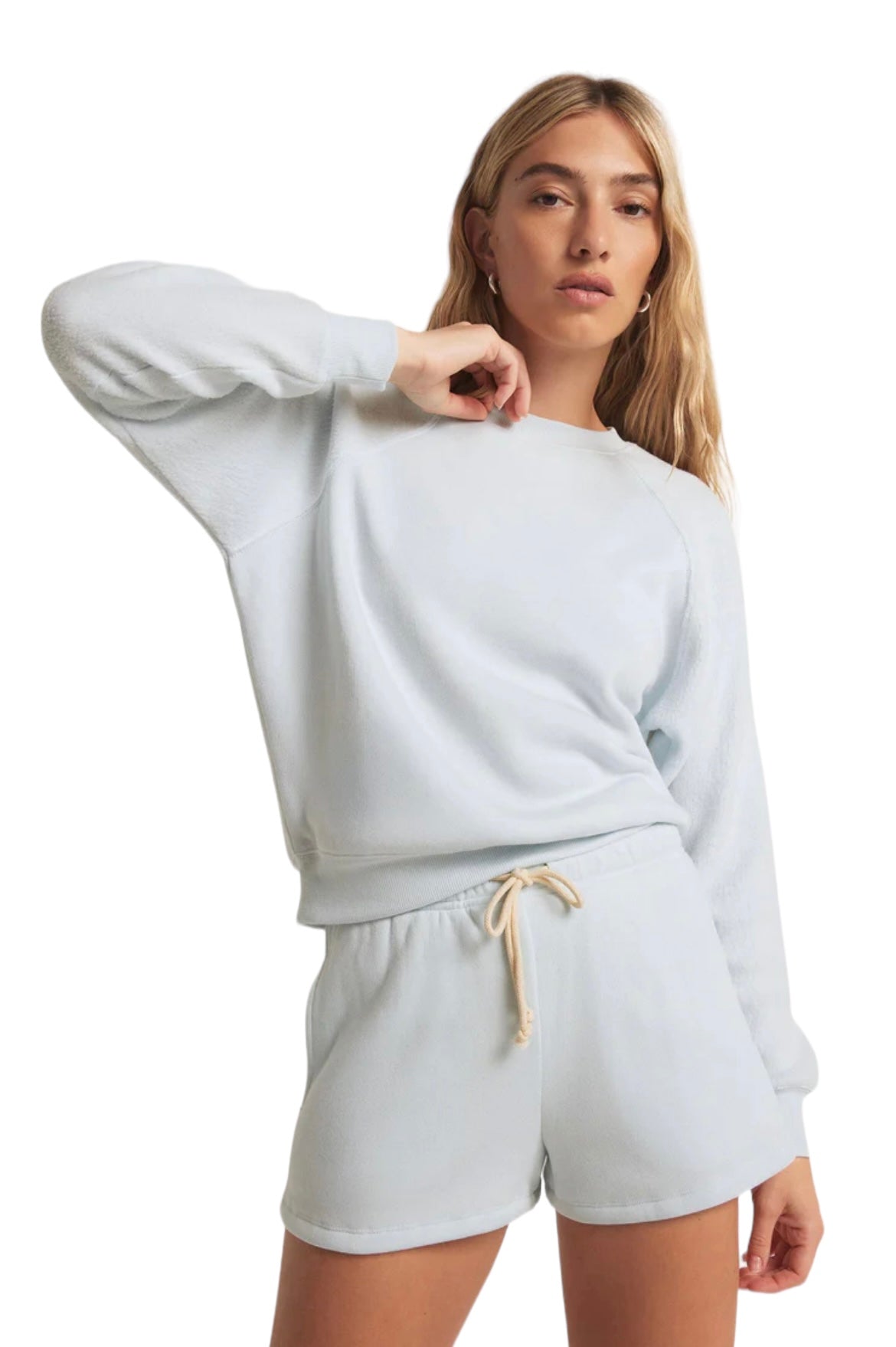 Z SUPPLY SALDANA REVERSE FLEECE TOP POOL BLUE
