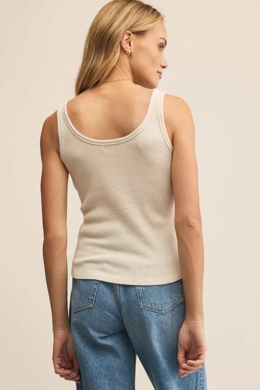 The soft structure of a henley meets the ease of a tank in this relaxed mini thermal top. Featuring a scoop neck, wide straps, and a snap-front placket, it’s made for layering, lounging, and everything in between.